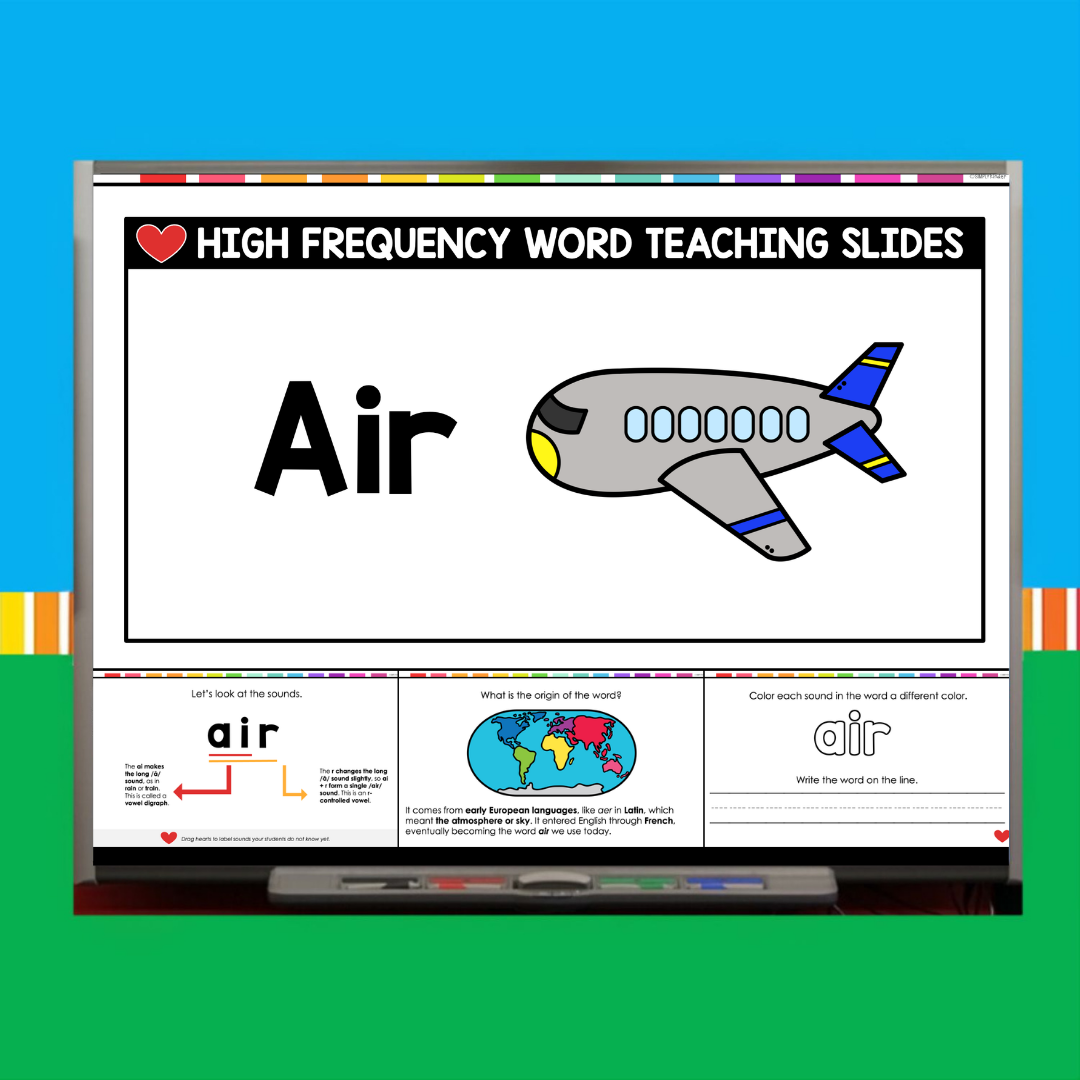 This download includes a ready-to-use PowerPoint for the sight word Air. Inside, you’ll find: