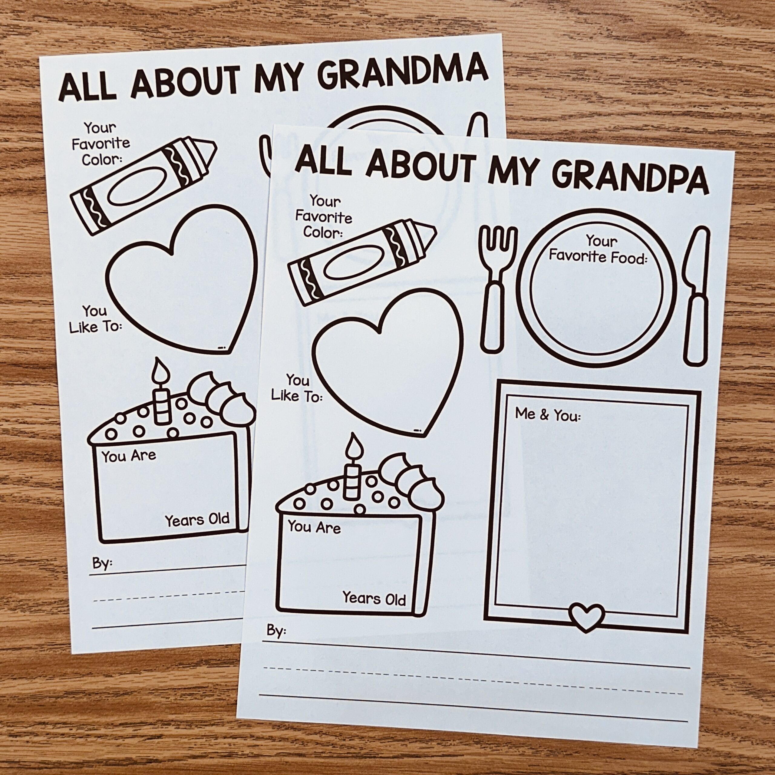 - All About My Grandparent / Grandma / Grandpa printable where students can easily record things about them.