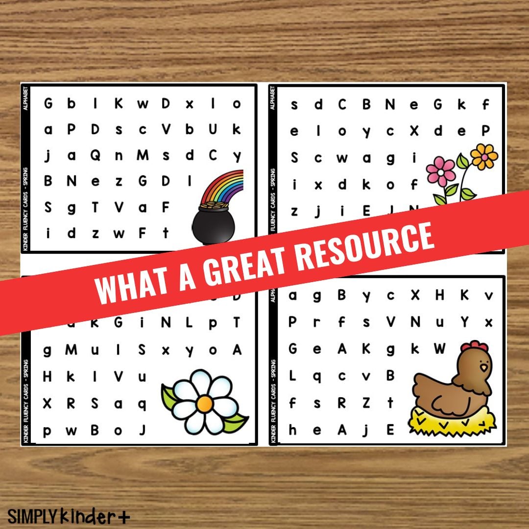 Alphabet Fluency Flash Cards to practice kindergarten skills, with fun topics for the spring! Cards come in quarter-page, half-page, and full-page printouts!