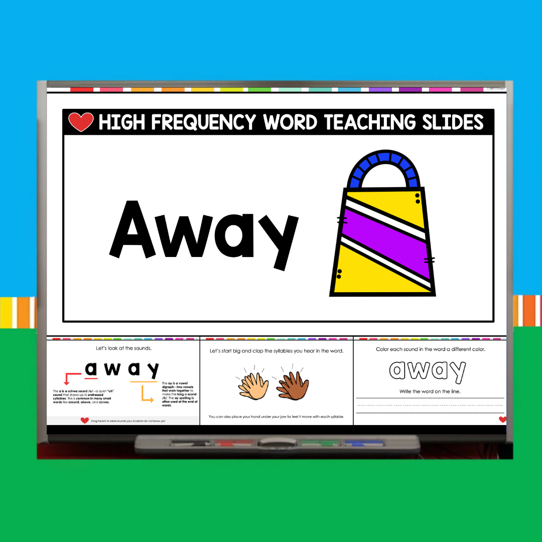 This download includes a ready-to-use PowerPoint for the sight word Away. Inside, you’ll find: