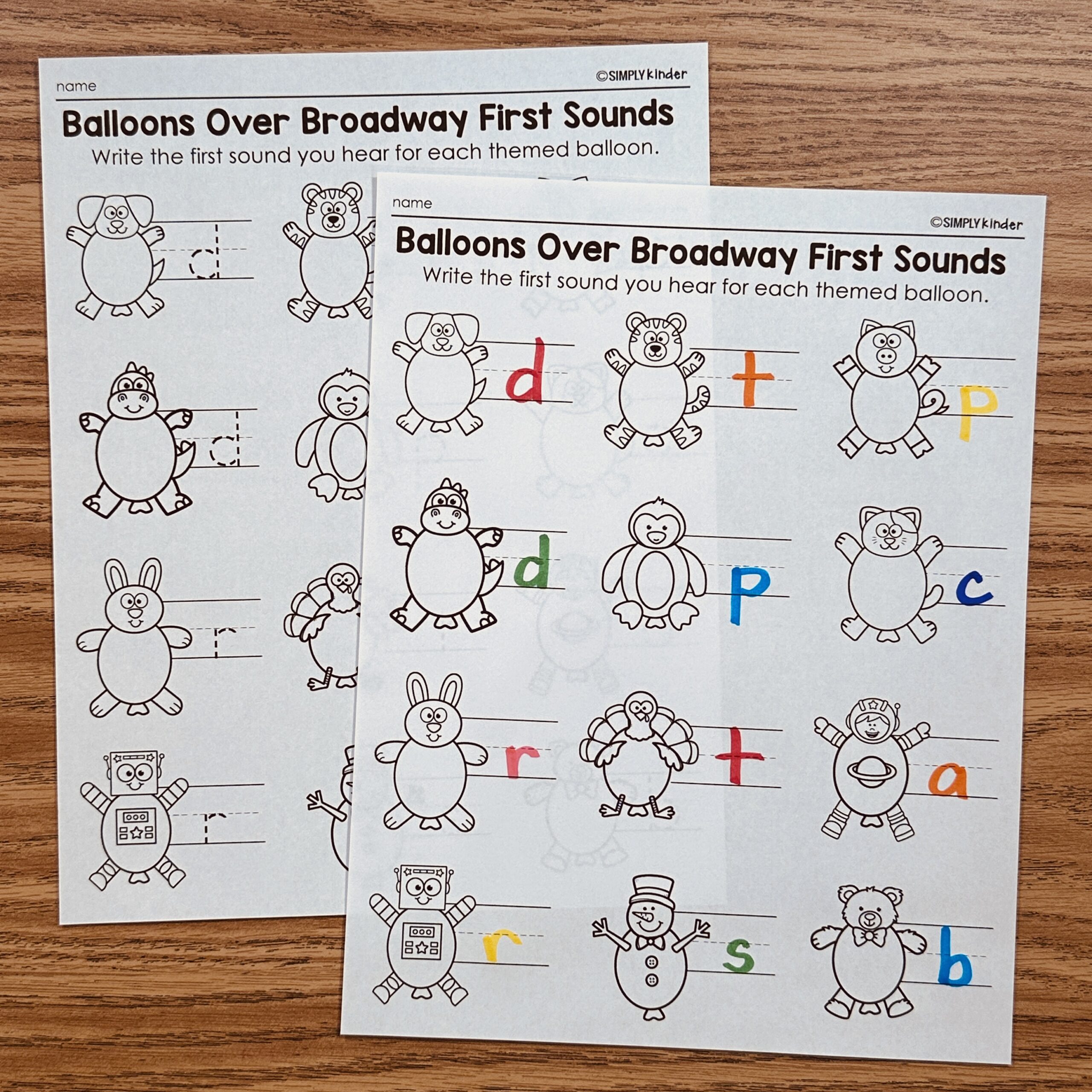 If you are reading the Balloons Over Broadway, here is a set of printables for practicing initial sounds.