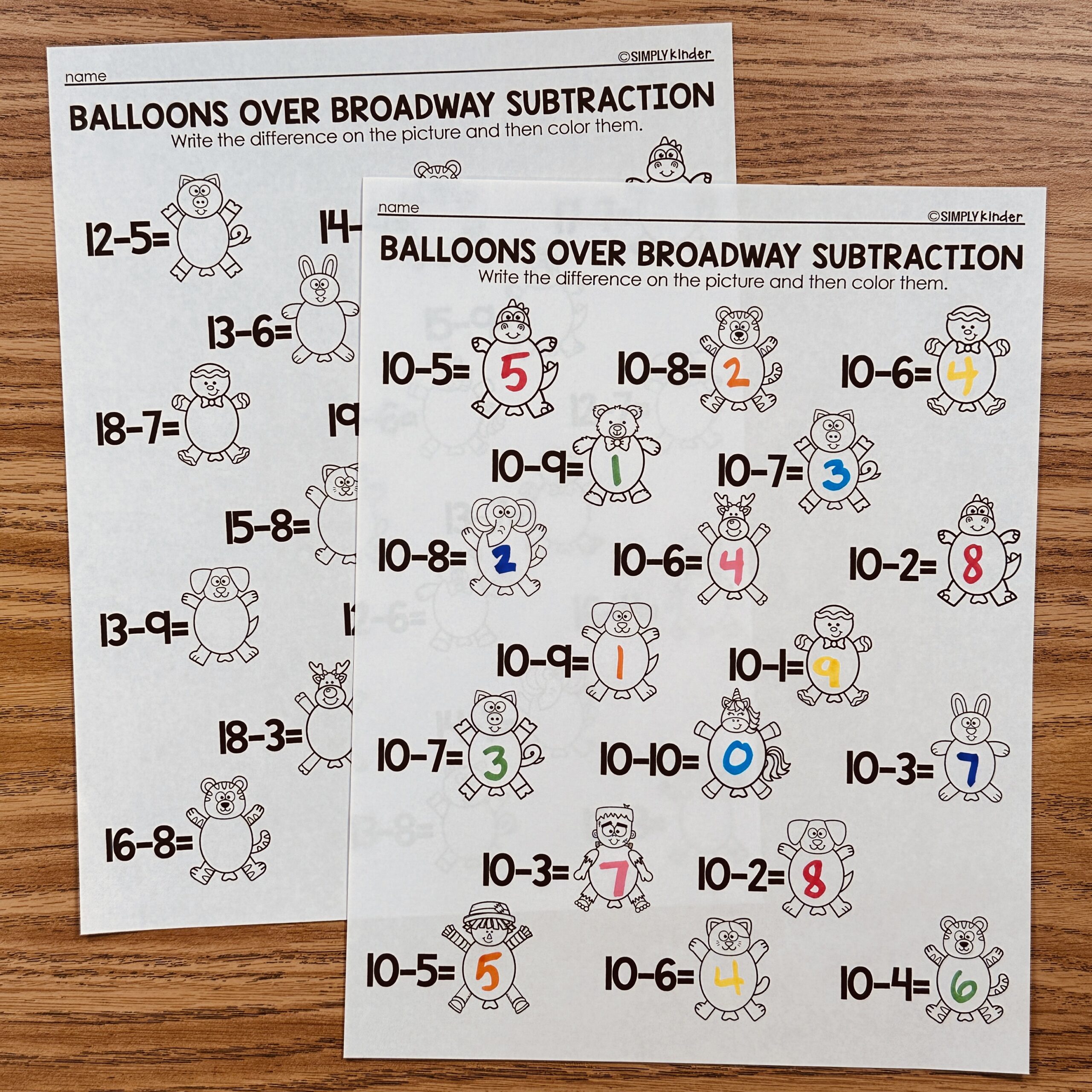 If you are reading the Balloons Over Broadway, here is a set of subtraction printables to go along with the book.