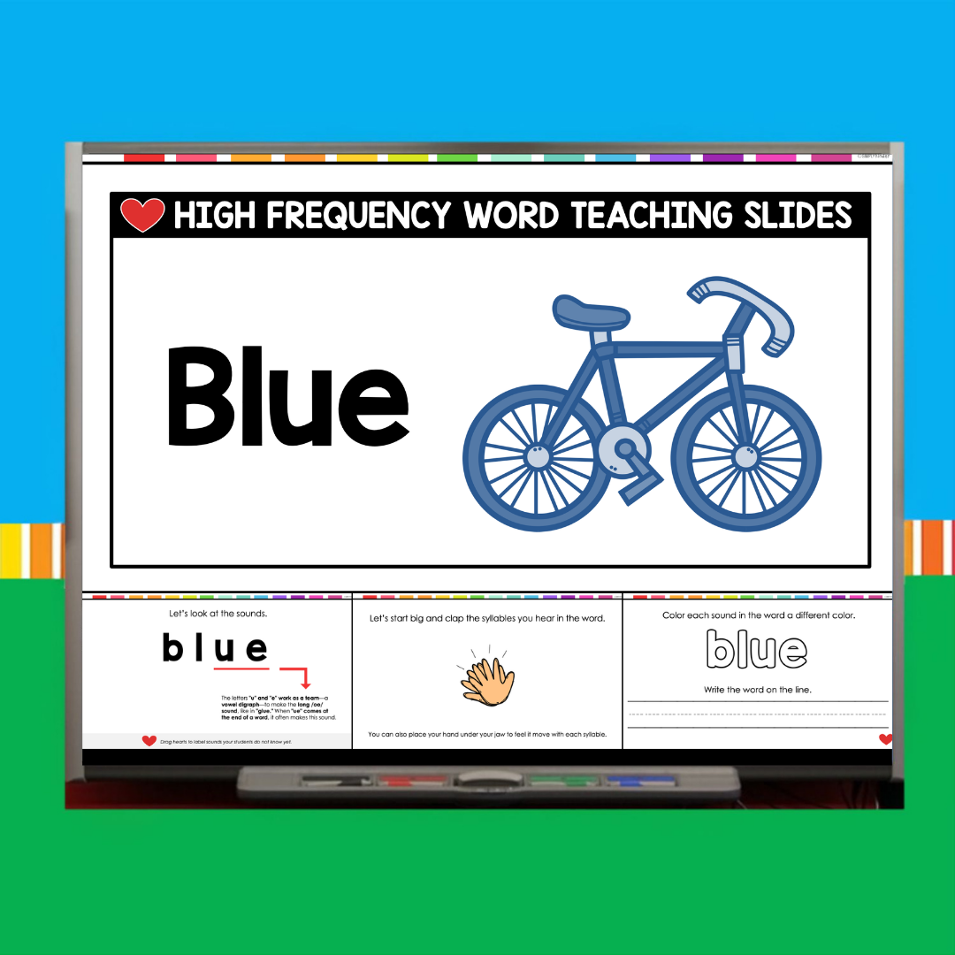 This download includes a ready-to-use PowerPoint for the sight word Blue. Inside, you’ll find: