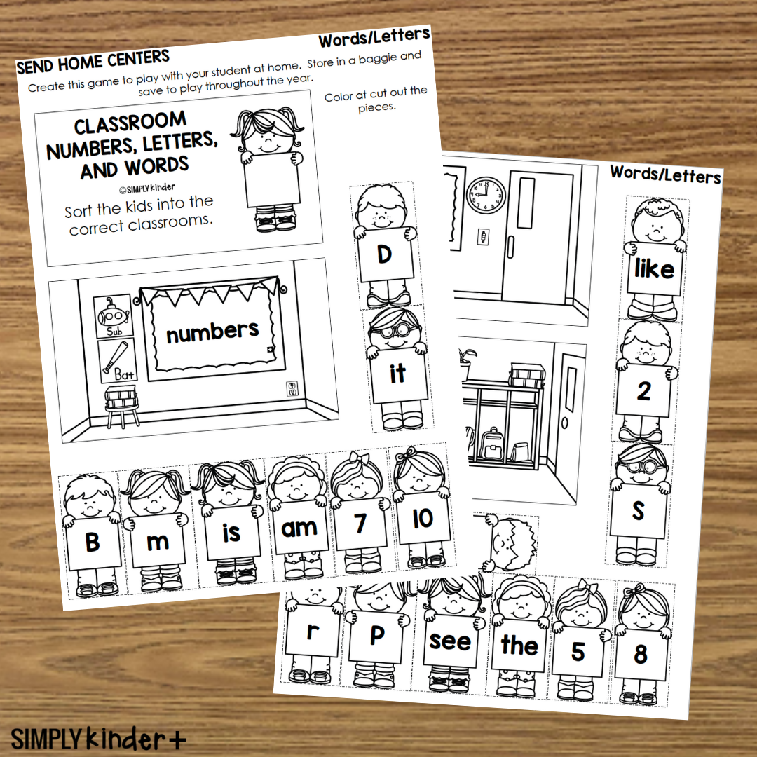Send this fun center home for your students to work on sorting letters, numbers, and words. Families will prep and store them so they can play all year.