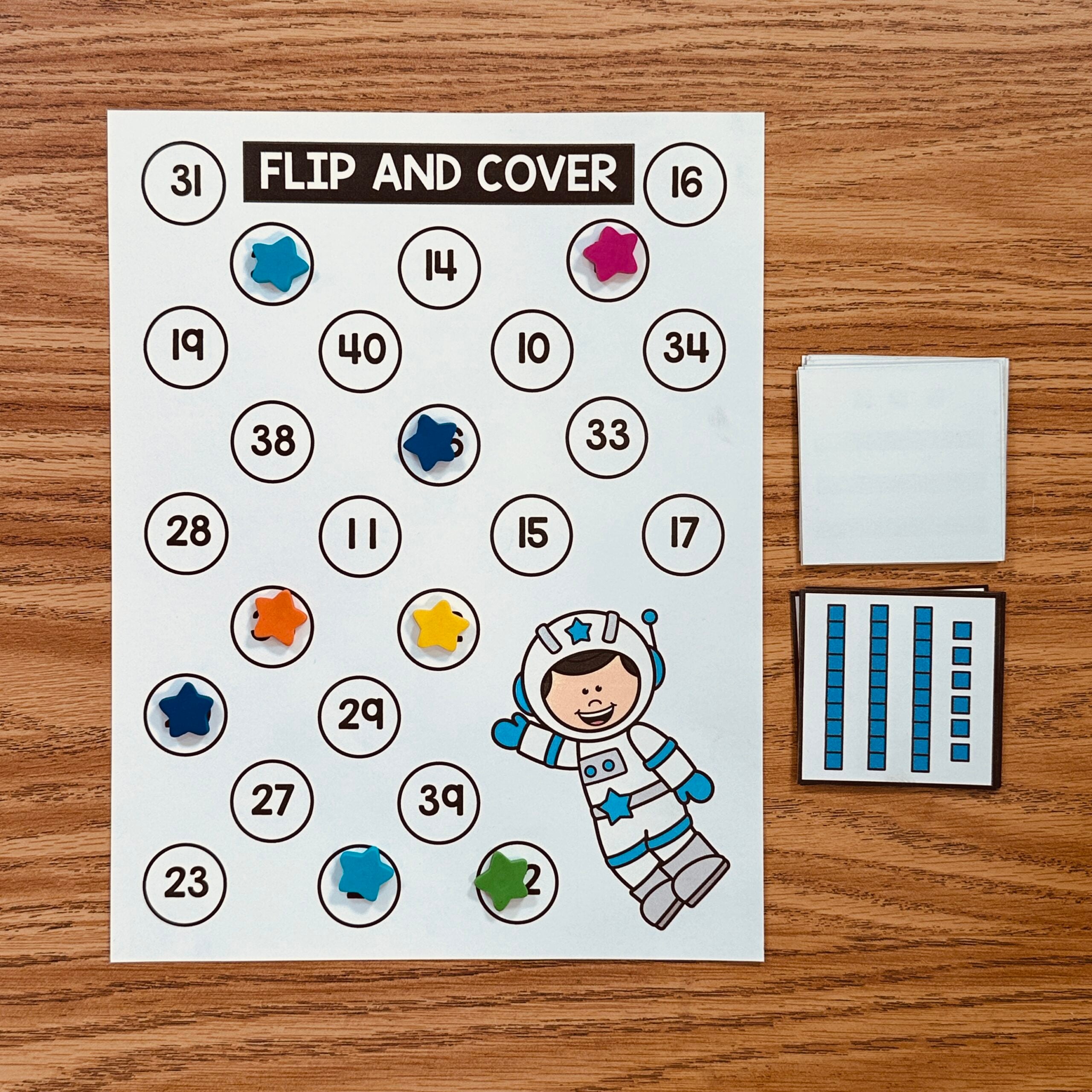 This flip and cover math center is perfect for a Space Day! Perfect for end-of-the-year-themed days or a bulletin board display!