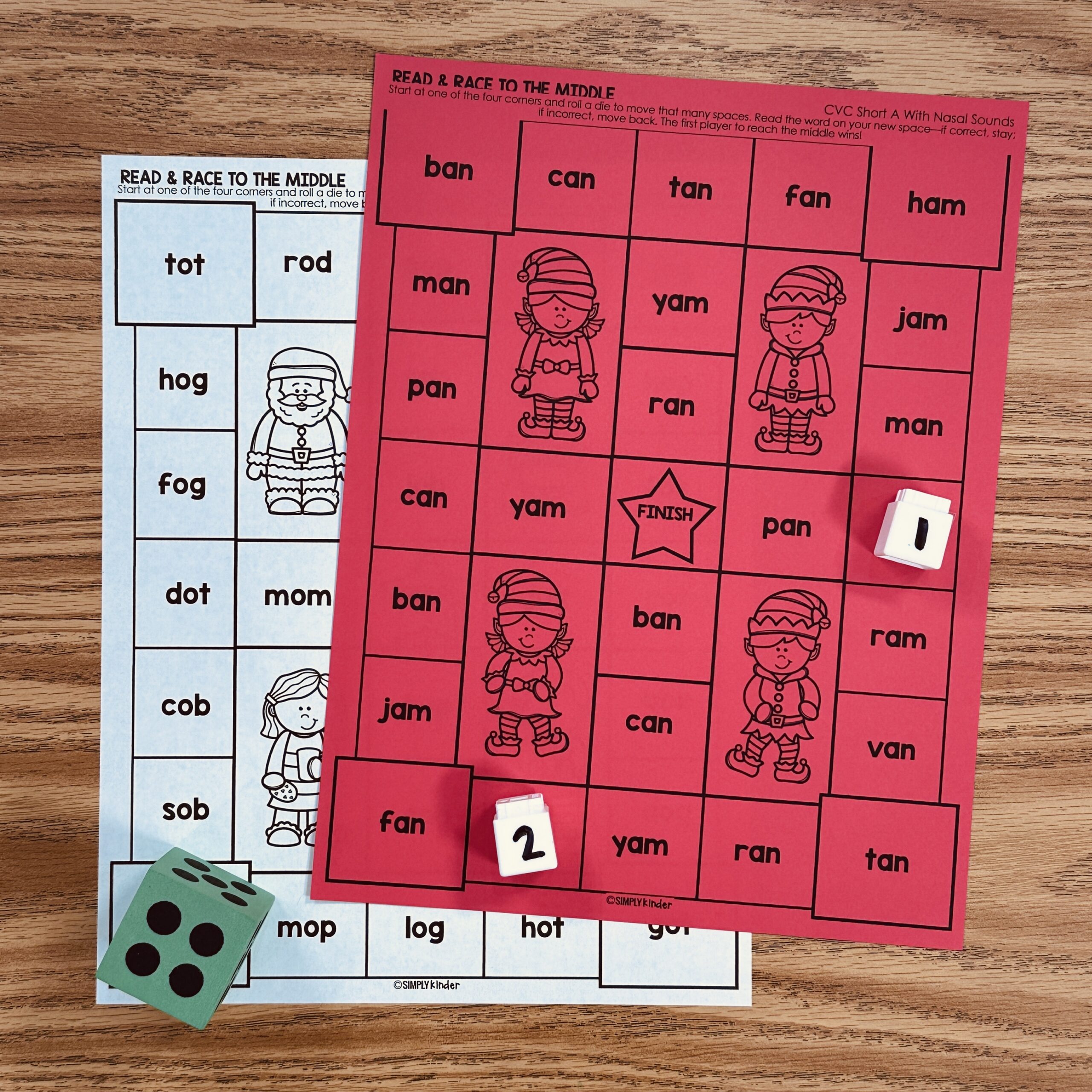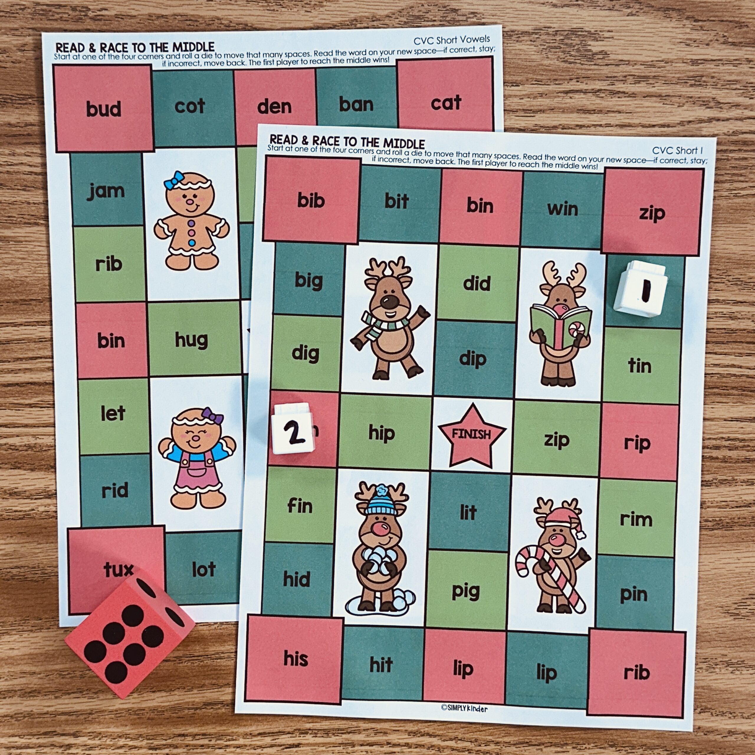 This is a set of Race To The Middle Games for CVC practice all with the Christmas theme! Students will roll a dice, move that many spaces, and cover that word. The goal is to get to the middle star, which is tricky when you only move the number of spaces you roll.