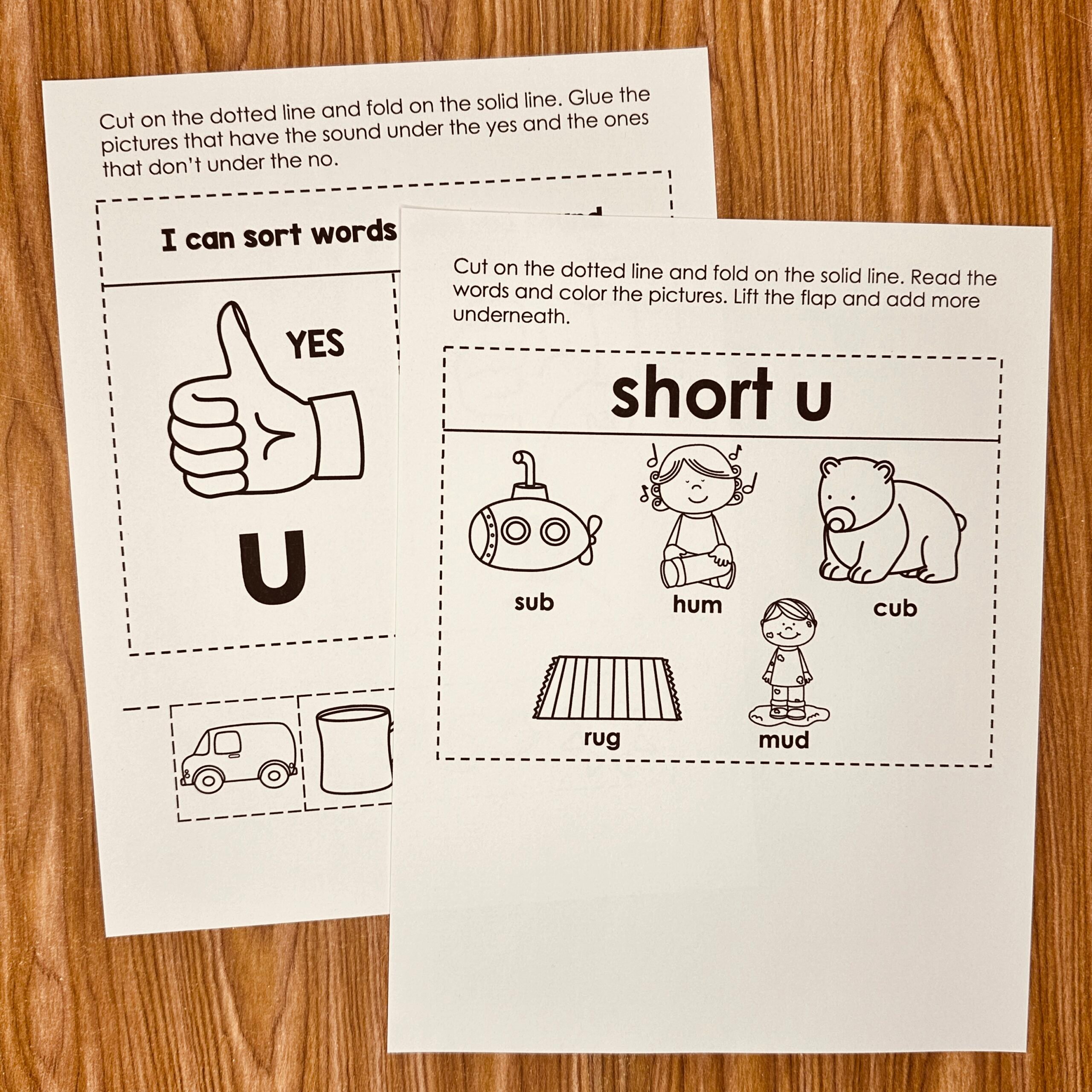 Each short vowel includes 7 pages that glue onto 4 pages in your notebook: