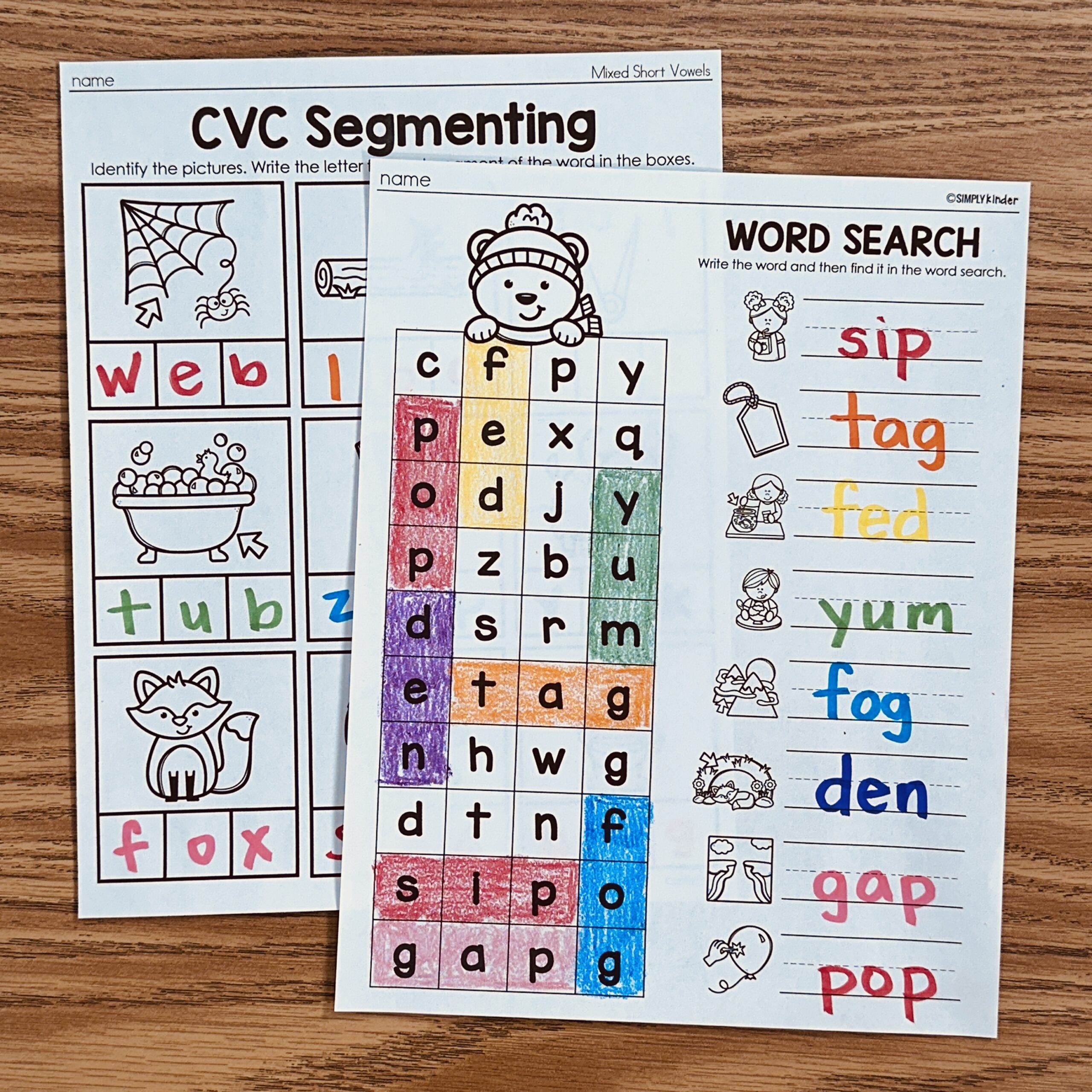 This is a set of CVC printables where students will read and write CVC words. This set includes word searches and segmenting printables.