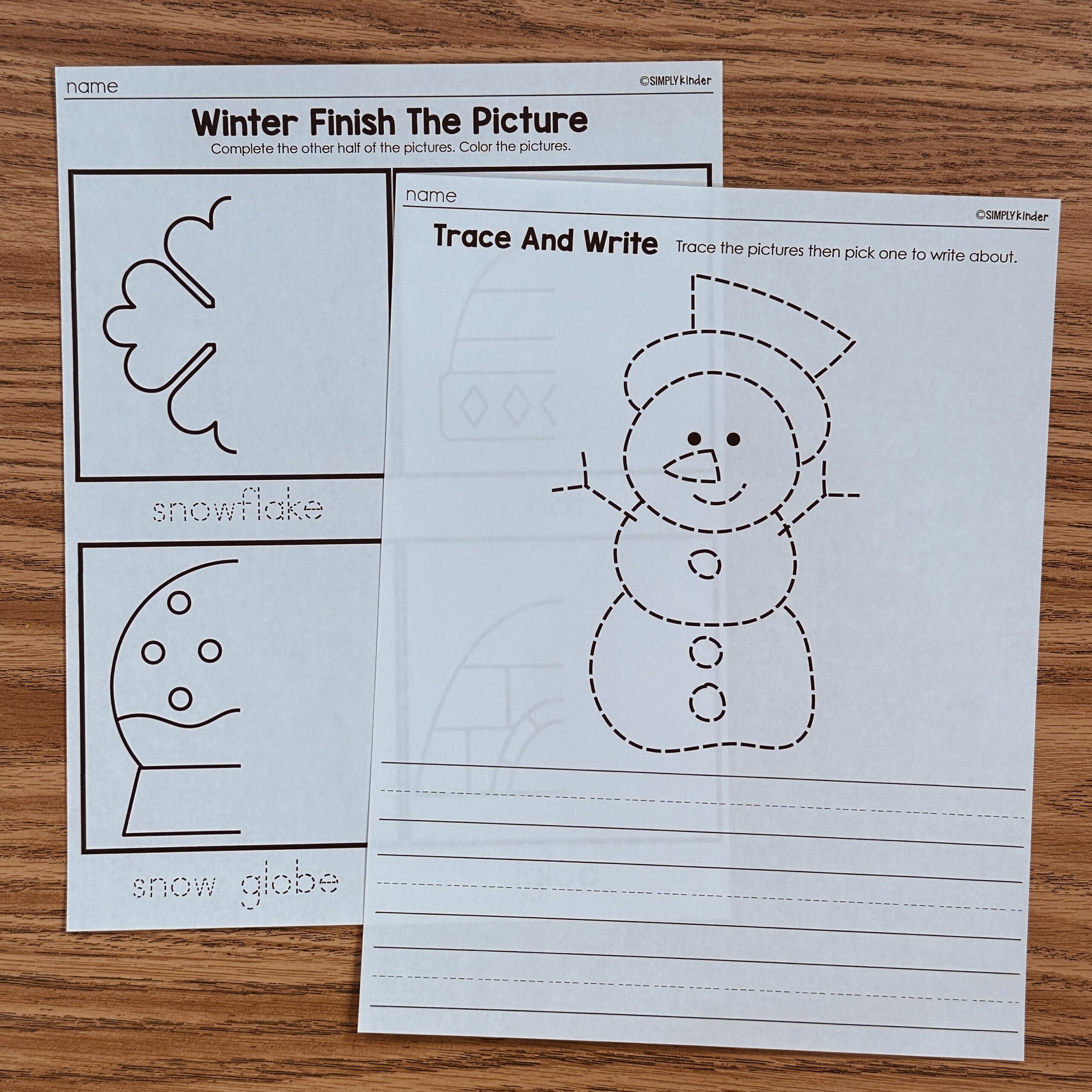 This is a set of fine motor printables. It includes activities where students will finish the picture (practicing symmetry) and activities where students will trace the picture and then write a story.