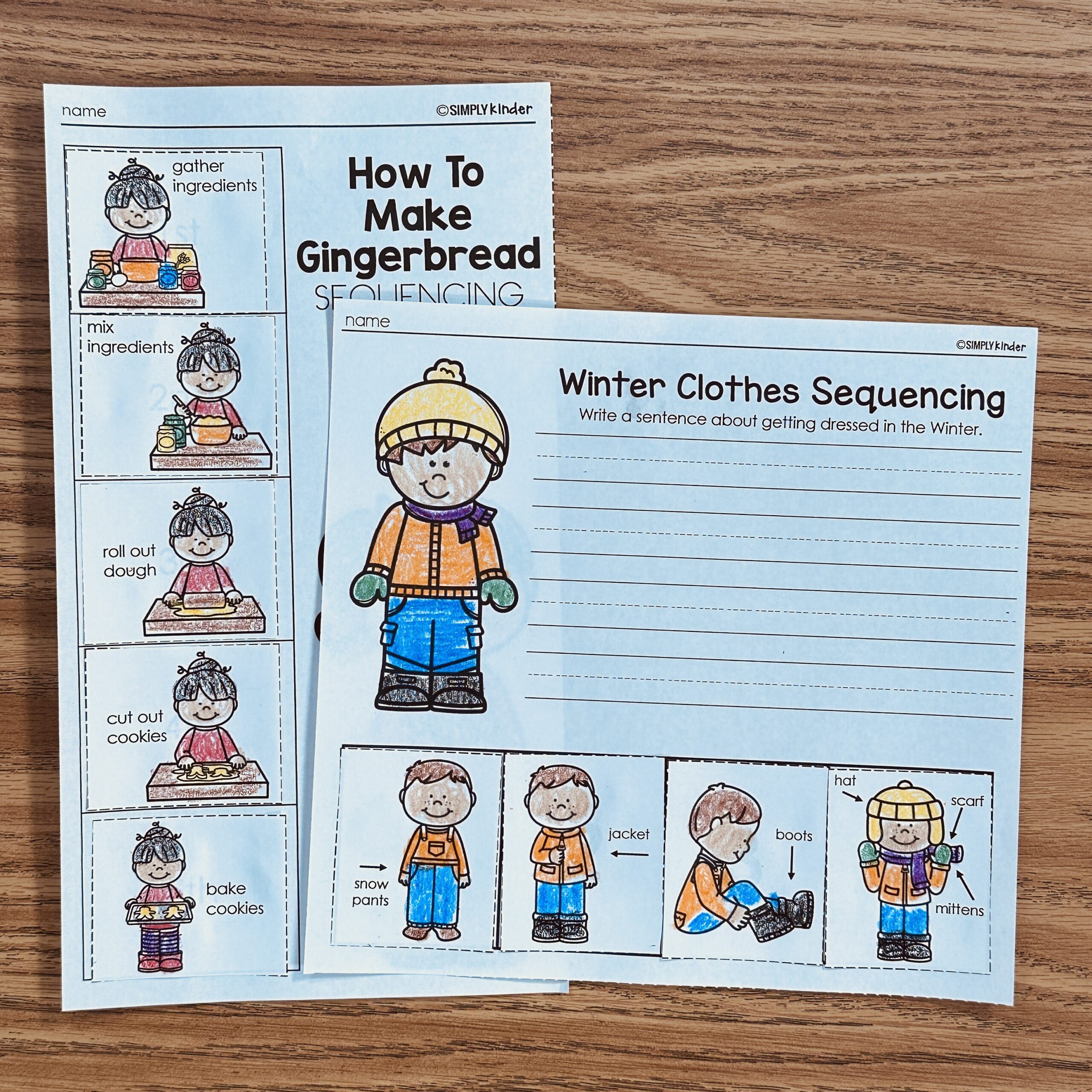 This is a set of sequencing and sorting printables with fun winter and holiday themes. Students will sequencing making gingerbread cookies and getting dressed for the winter. They will also sort liquids and gasses.