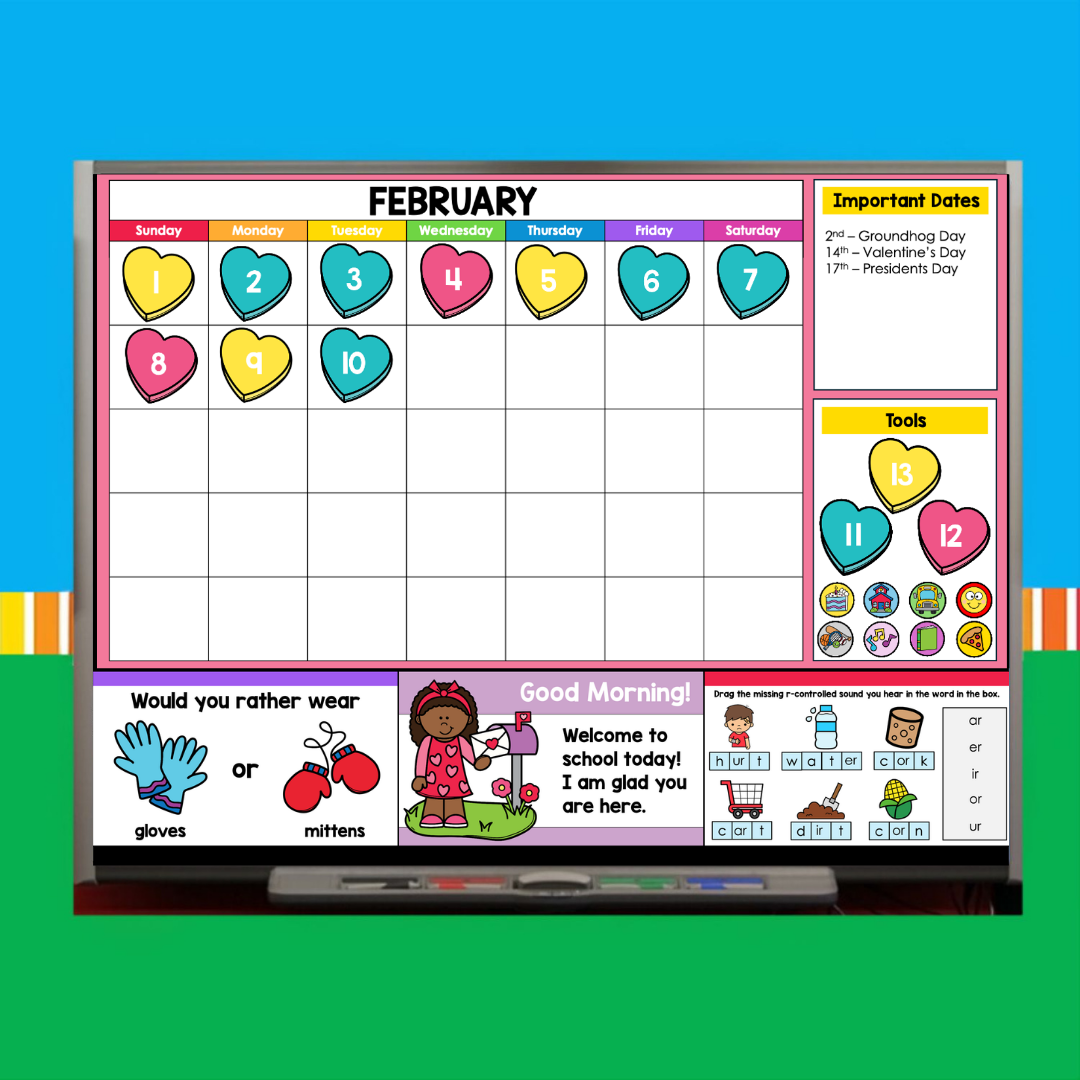 February Morning Meeting Slides First Grade