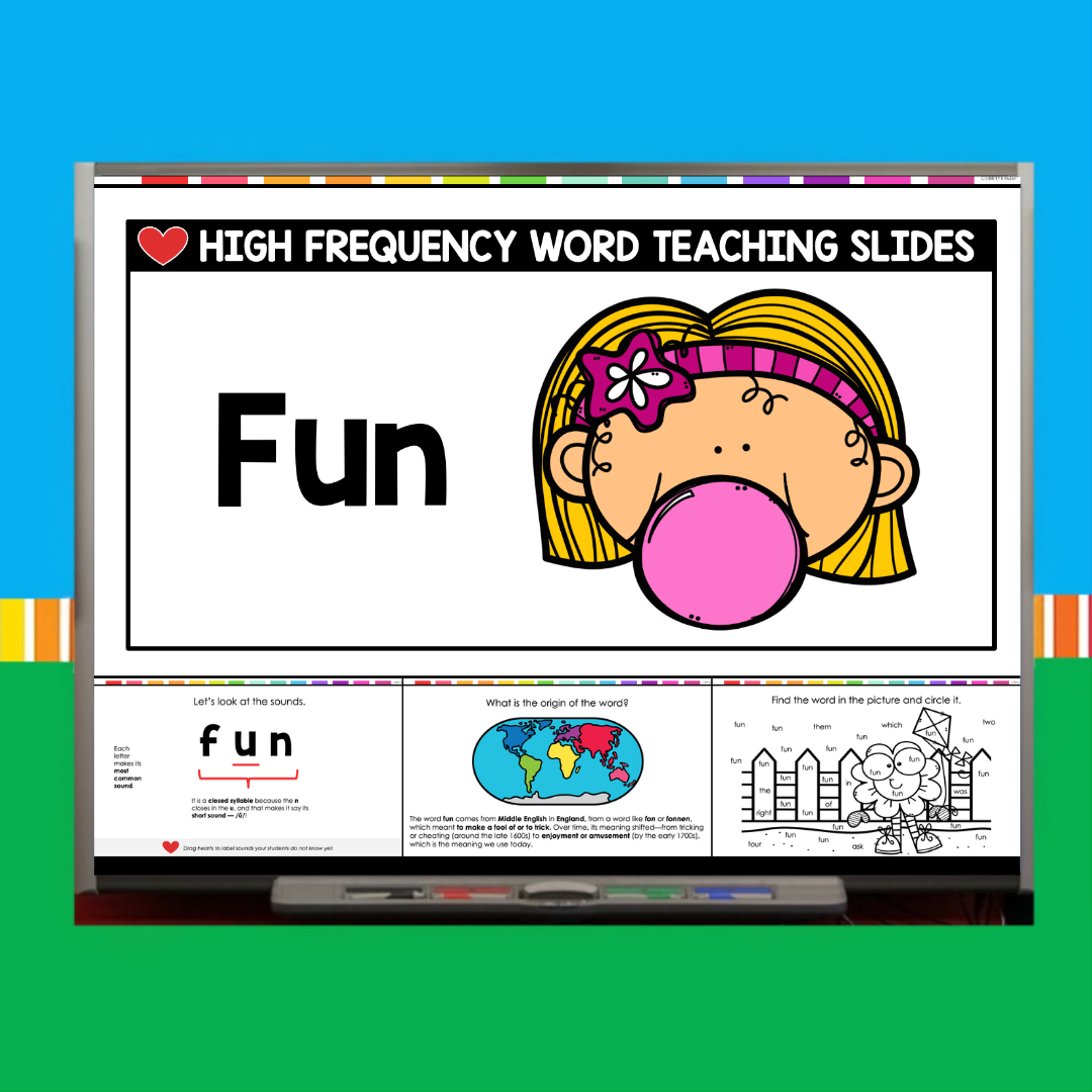 This download includes a ready-to-use PowerPoint for the sight word Fun. Inside, you’ll find: