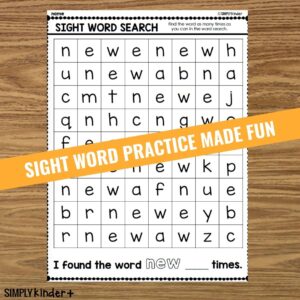 Practice sight words with a fun word search! Perfect for kindergarten, as the word only appears left to right and top to bottom and never intersect. At the end, they will count how many times they found the word and write the number. (It’s fun to color the words in different colors so you can see them clearly).