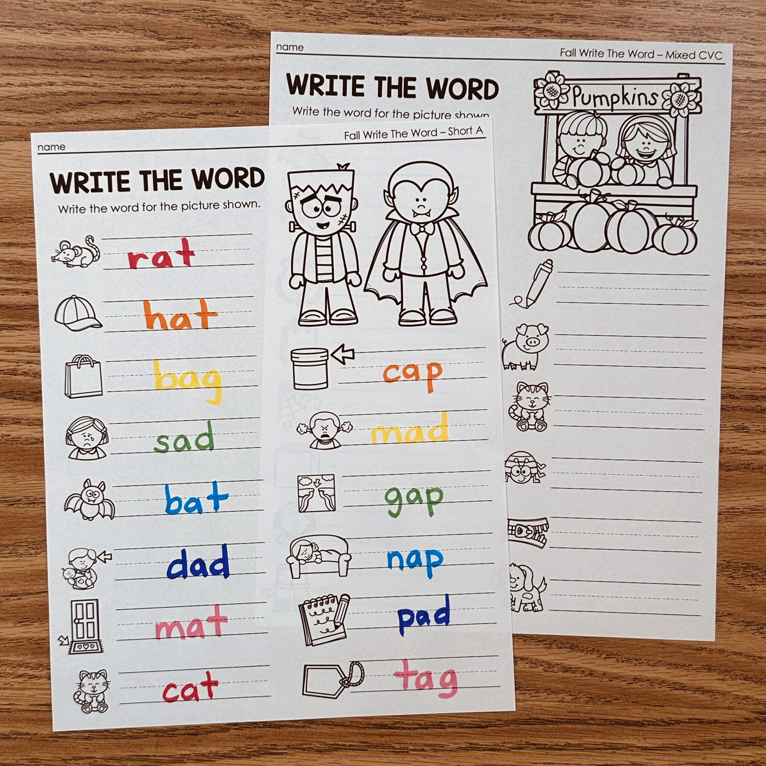 This is a set of Write The Word Printables for CVC practice all with the Halloween theme! Students will write the words for the pictures shown.
