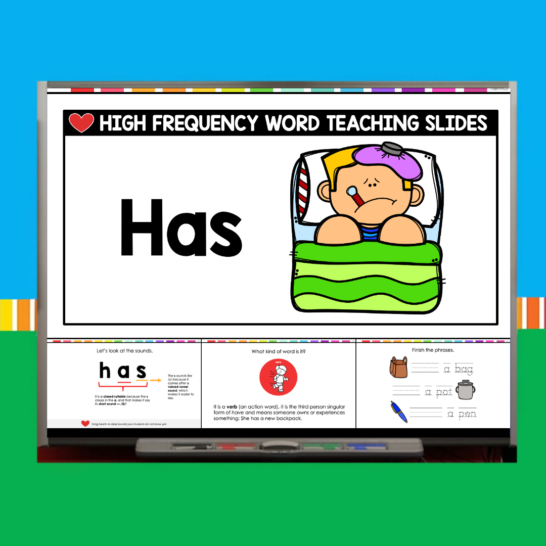 This download includes a ready-to-use PowerPoint for the sight word Has. Inside, you’ll find: