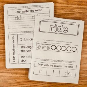 - Write in a Sentence (write the word in a sentence and lift the flap to write again or draw a picture)