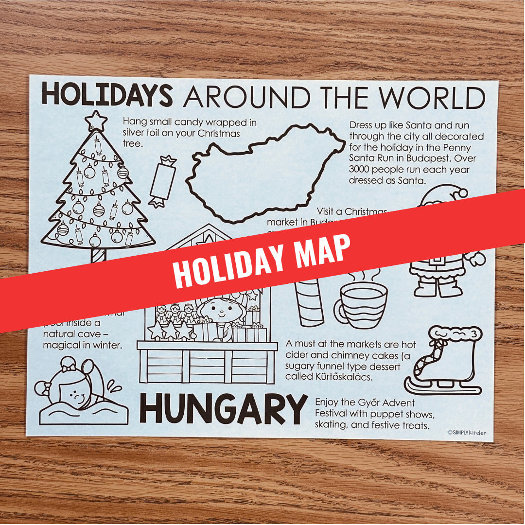 This is a one page printable map with some key cities and different holiday traditions for that you can do in Hungary during the holidays. (Christmas).