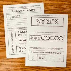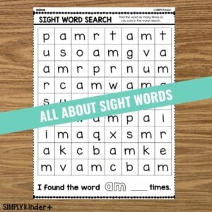 Practice sight words with a fun word search! Perfect for kindergarten, as the word only appears left to right and top to bottom and never intersect. At the end, they will count how many times they found the word and write the number. (It’s fun to color the words in different colors so you can see them clearly).