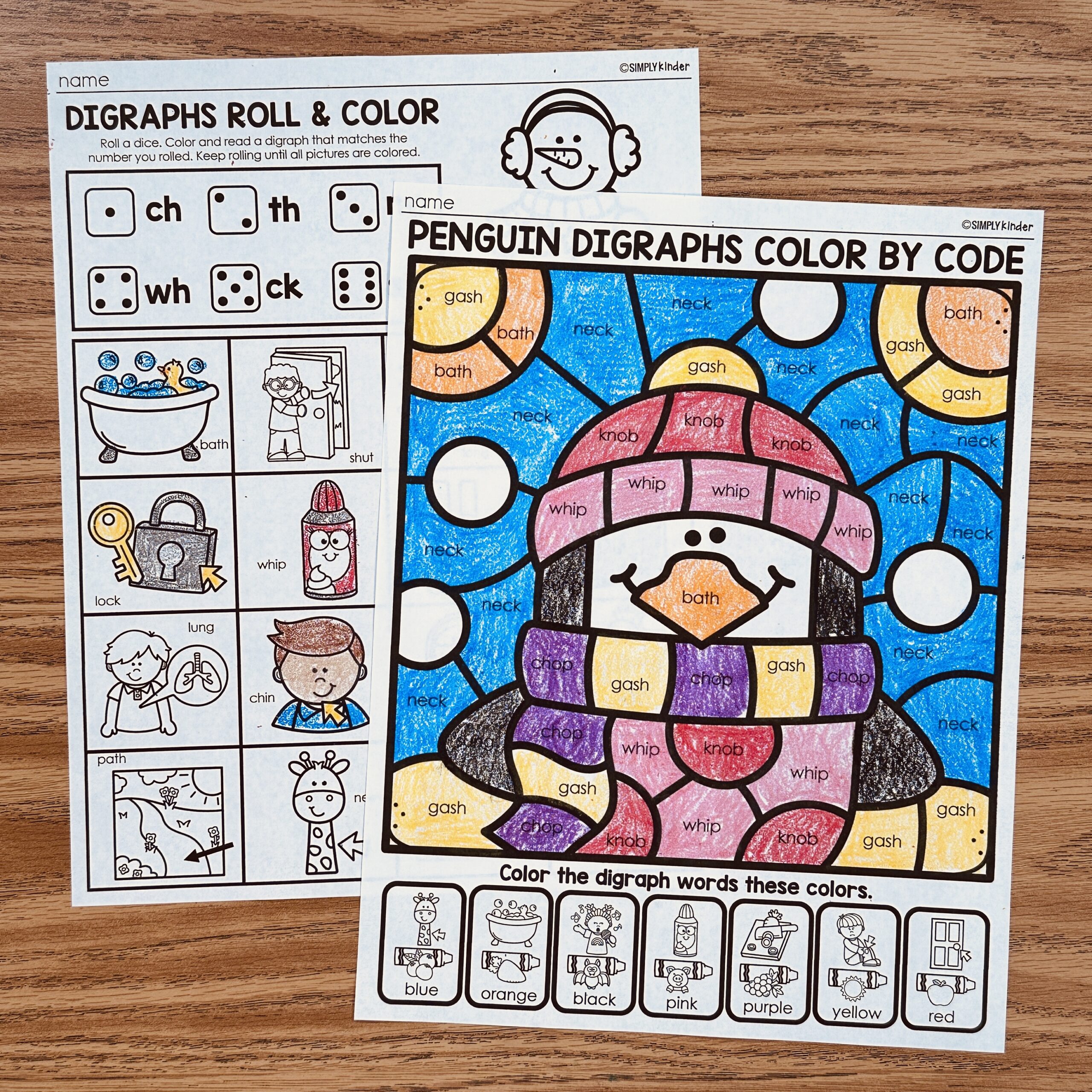 This is a set of digraph printables where students will read and write digraph words. This set includes roll and write, color by codes, picture search and finds, roll and color, and several other style worksheets.