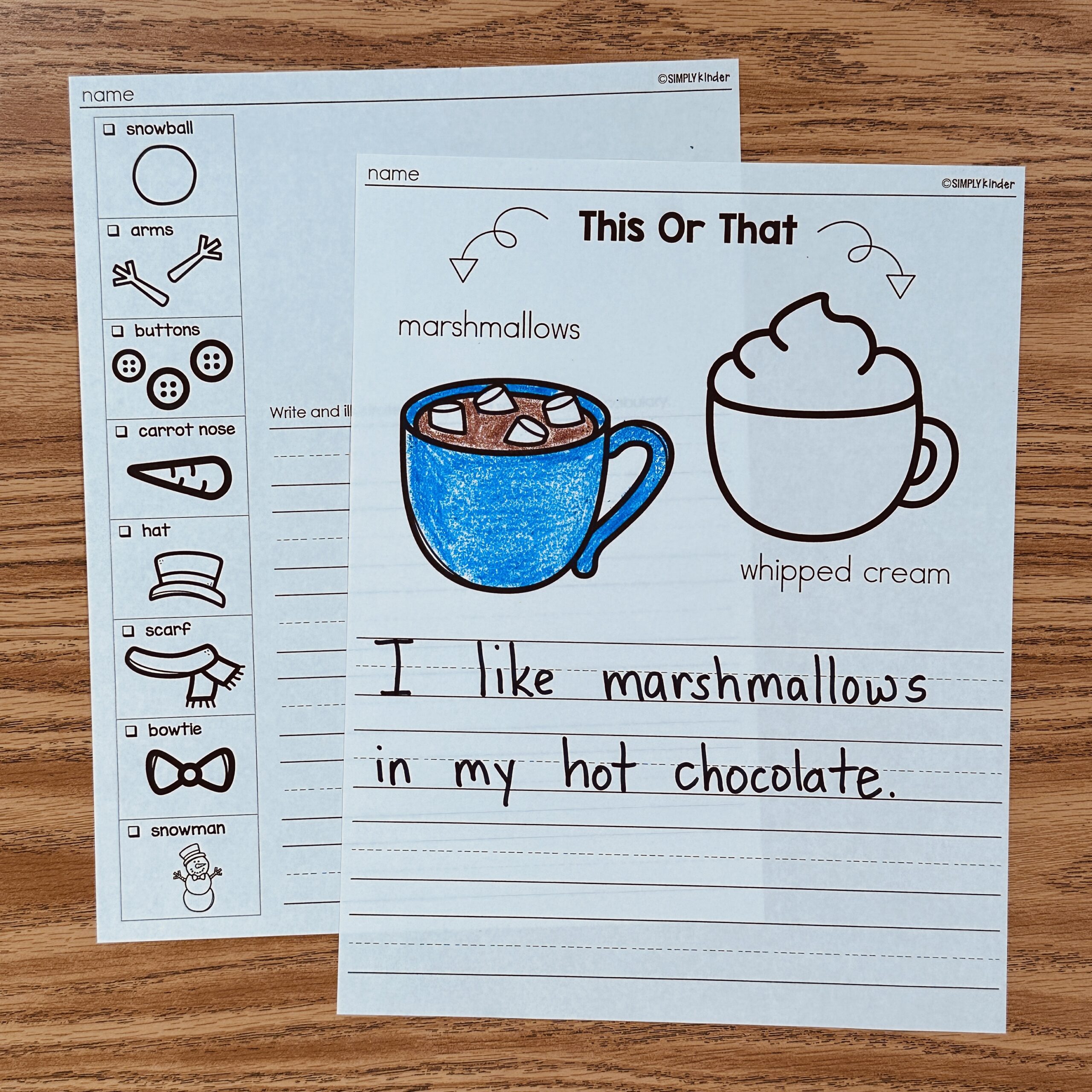 This is a set of writing printables. It includes This or That Writing and some writing pages with vocabulary.