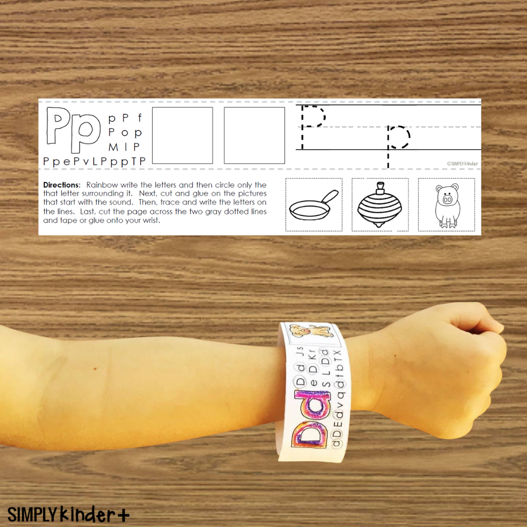 Show off that you know the letters with this fun bracelet. Students will write the letter, glue on pictures with the initial sound, and wear it home.