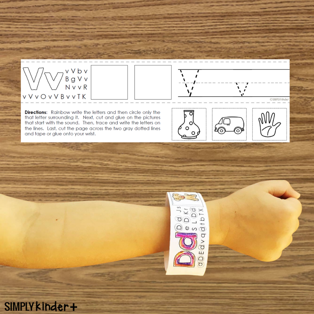 Show off that you know the letters with this fun bracelet. Students will write the letter, glue on pictures with the initial sound, and wear it home.