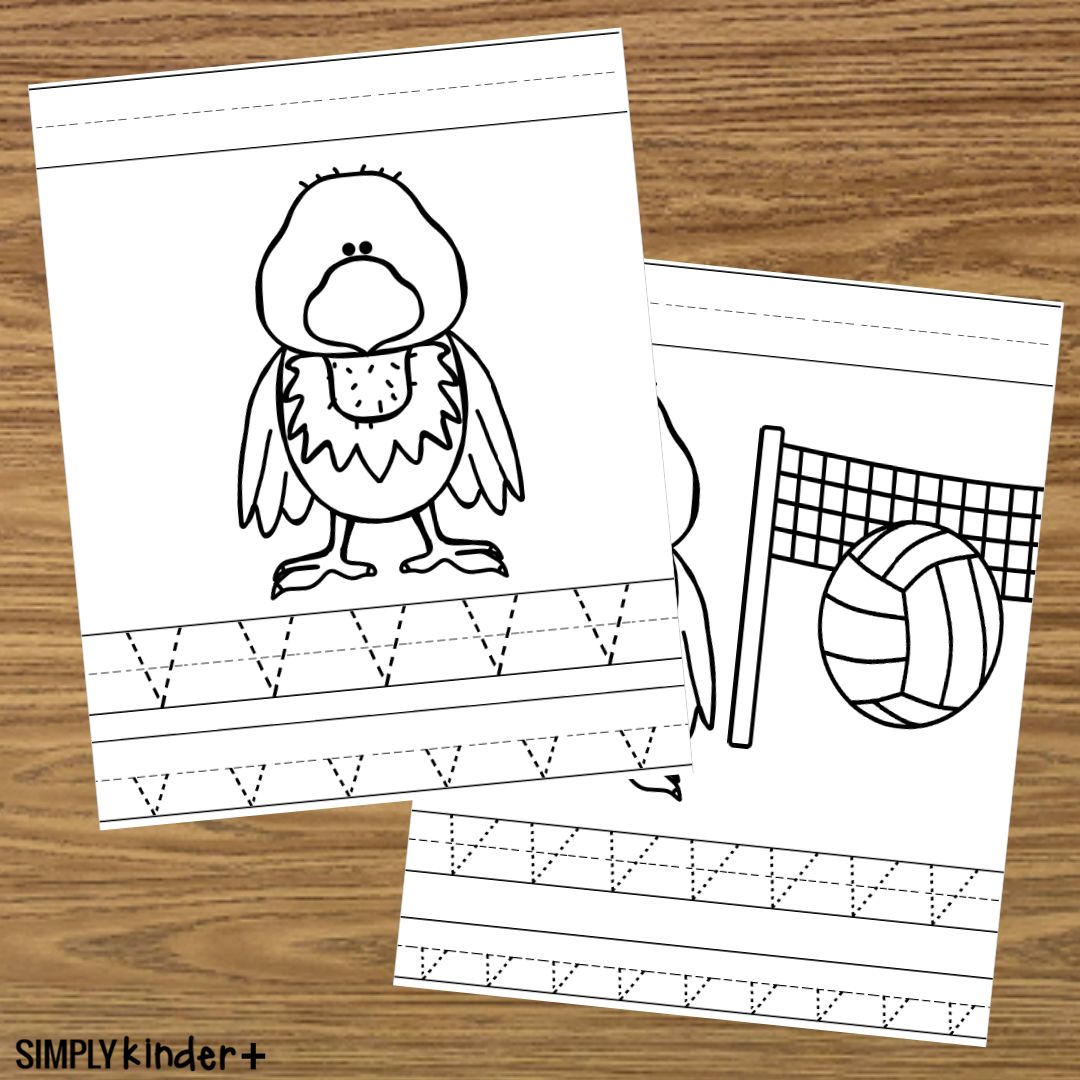 Practice writing with these simple alphabet practice pages. The pages have large initial sound pictures and are available in both Traditional and D’nealian handwriting styles. These are great for classwork, homework, and centers when teaching the letter V.