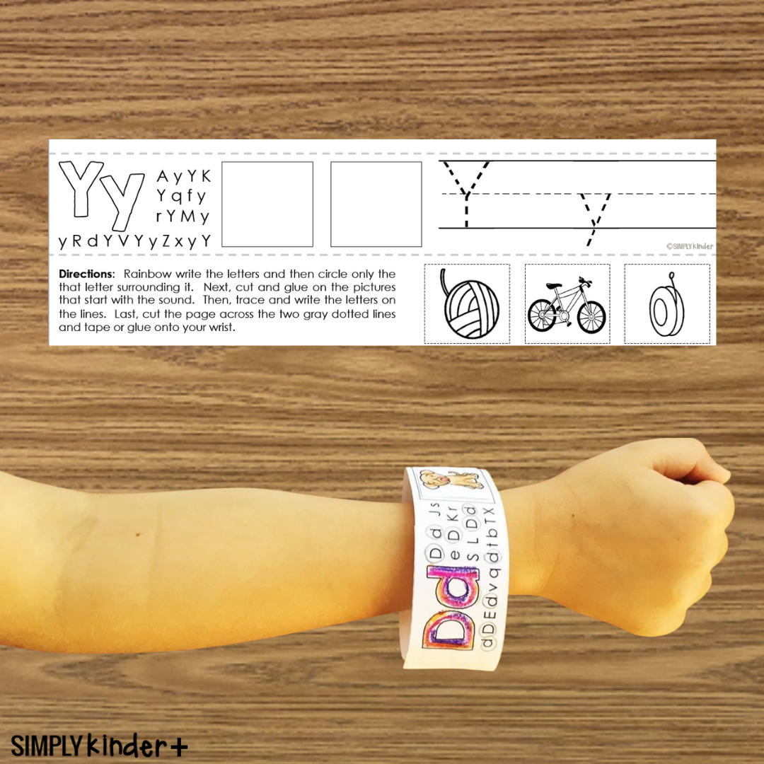 Show off that you know the letters with this fun bracelet. Students will write the letter, glue on pictures with the initial sound, and wear it home.