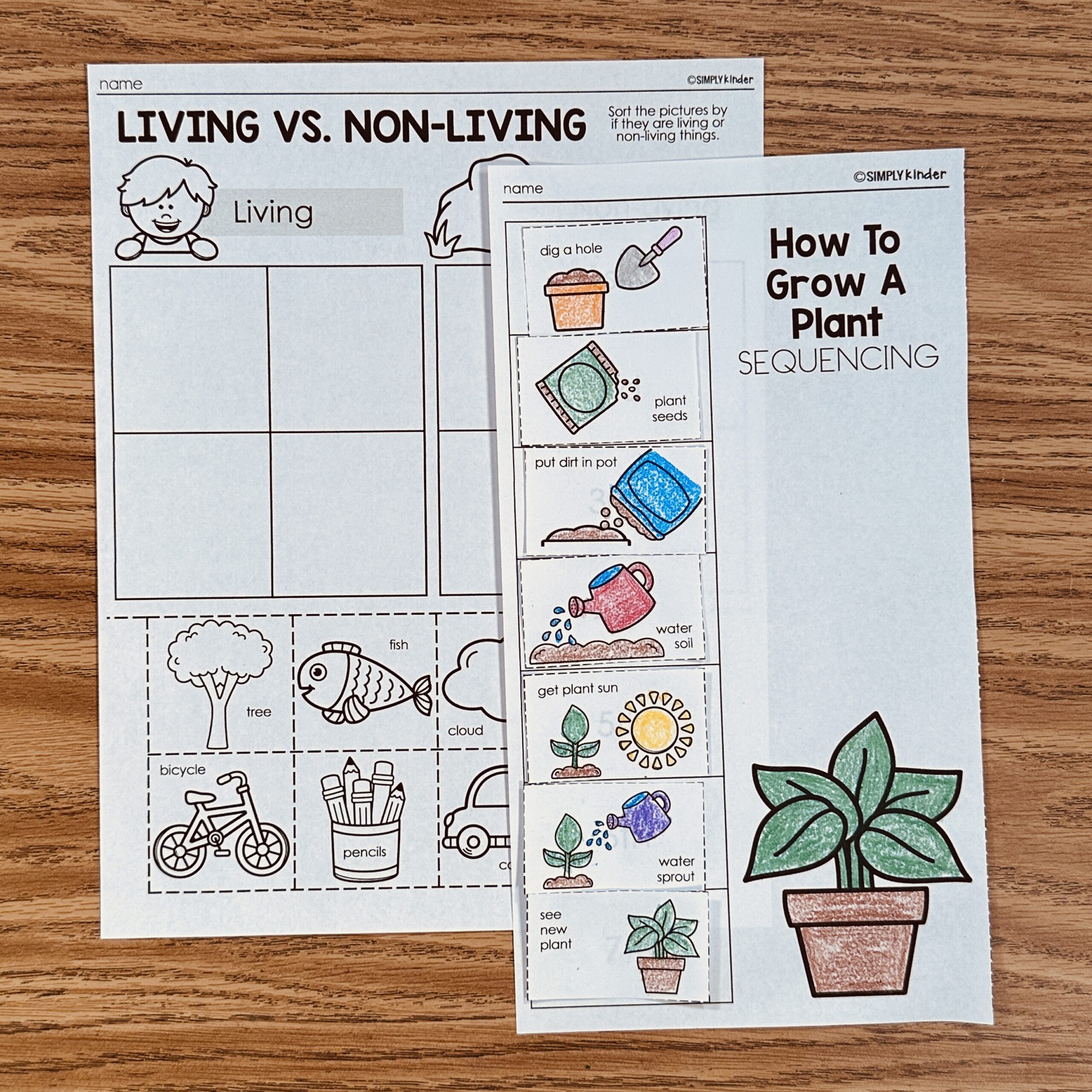 This is a set of sequencing and sorting printables with fun winter themes. Students will sequencing making a plant a plan, getting ready for the rain, and sorting living and nonliving items.