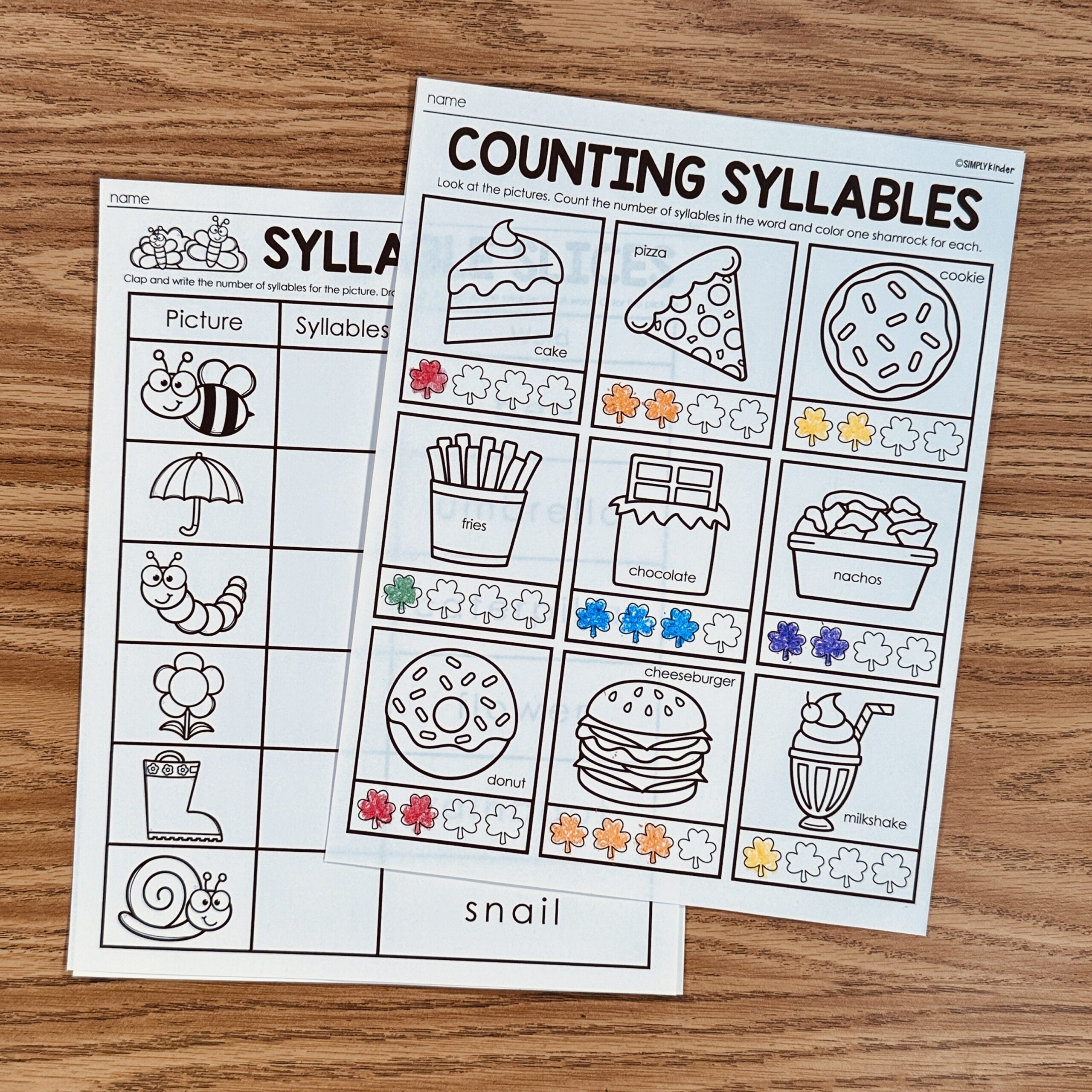 This is a set of syllables printables where students will count how many syllables are in a word.