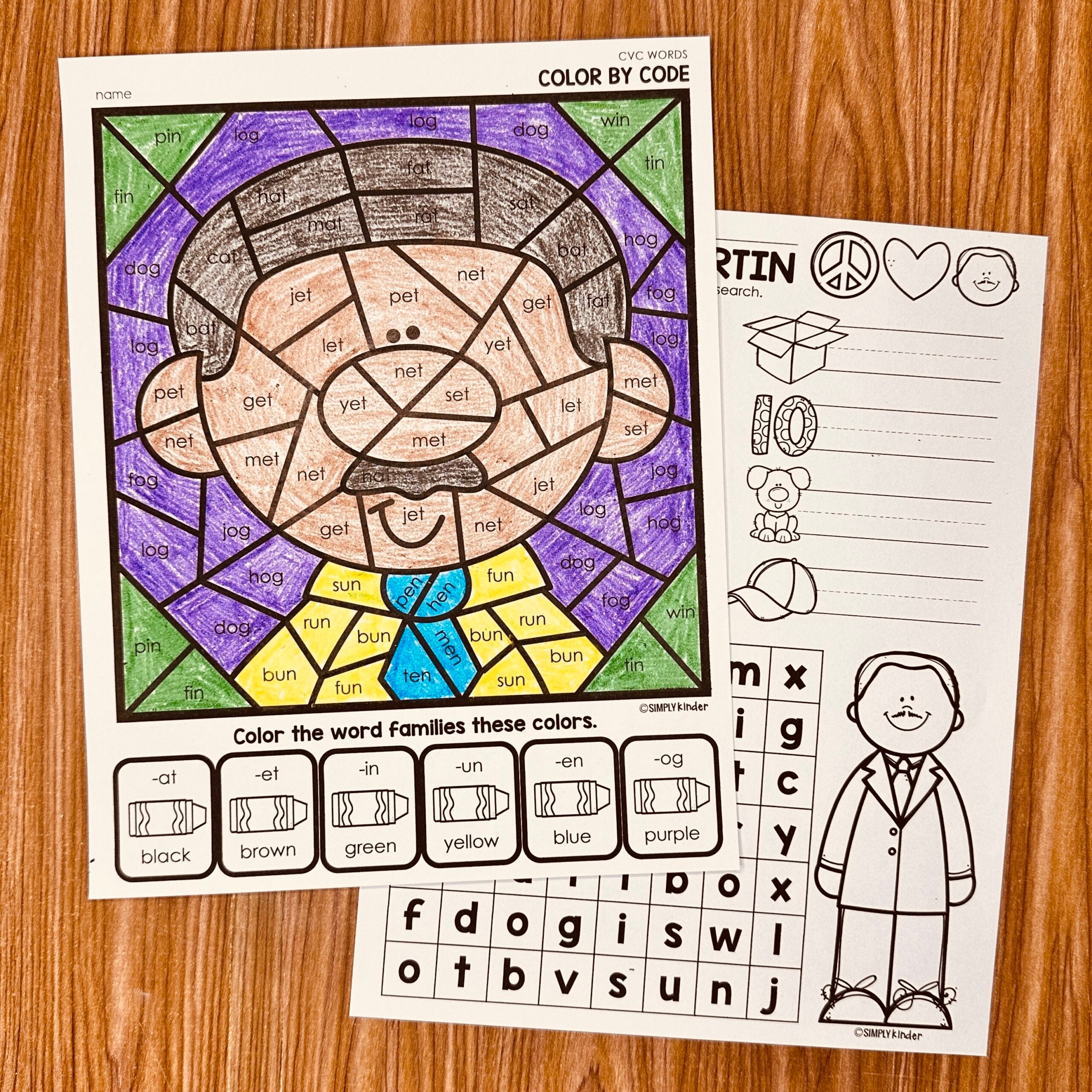 If you are practicing decoding during your Martin Luther King unit these printable pages may be fun to do too. Students read and write CVC words.
