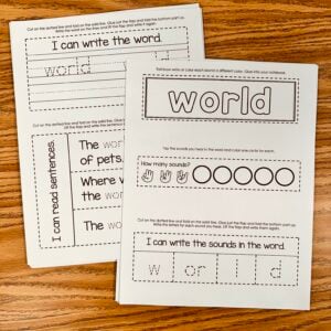 - Write in a Sentence (write the word in a sentence and lift the flap to write again or draw a picture)