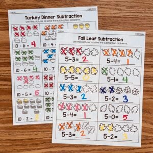 This is a set of addition activities with fun Thanksgiving and Fall themes.