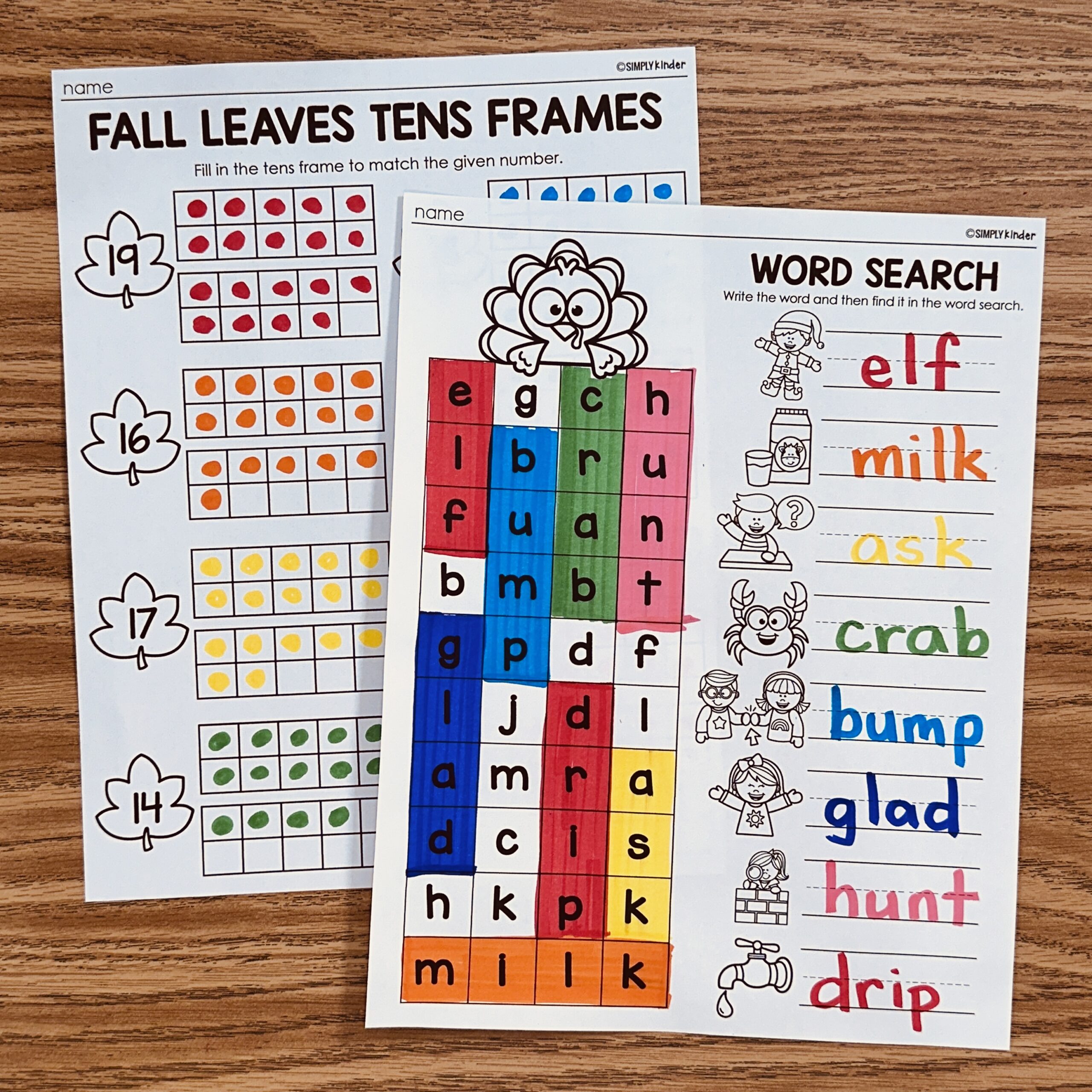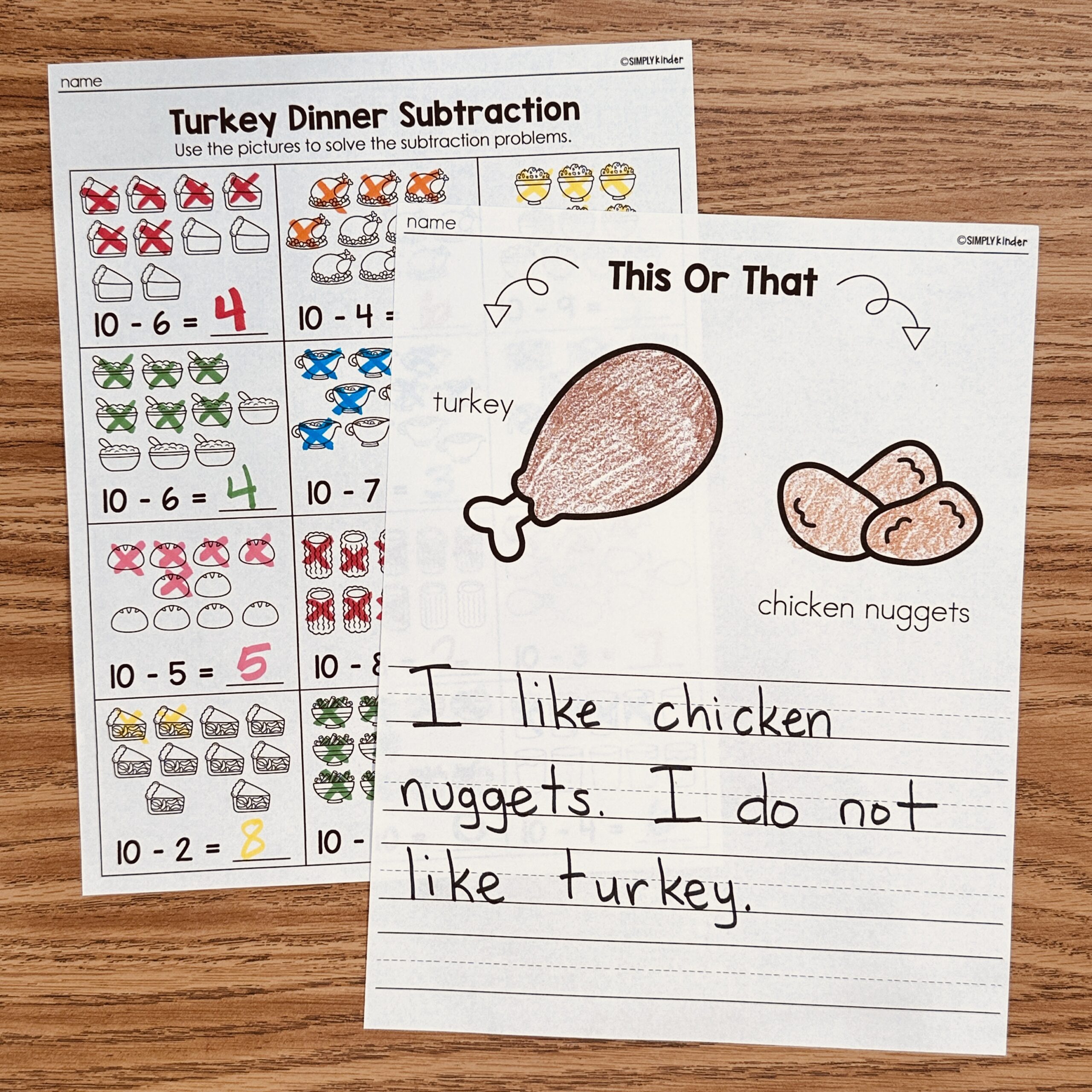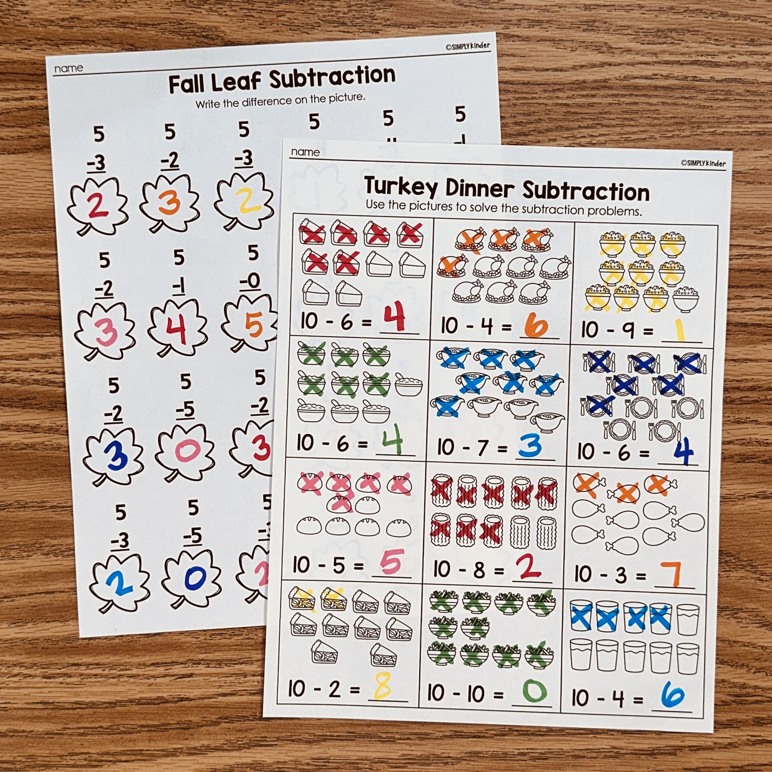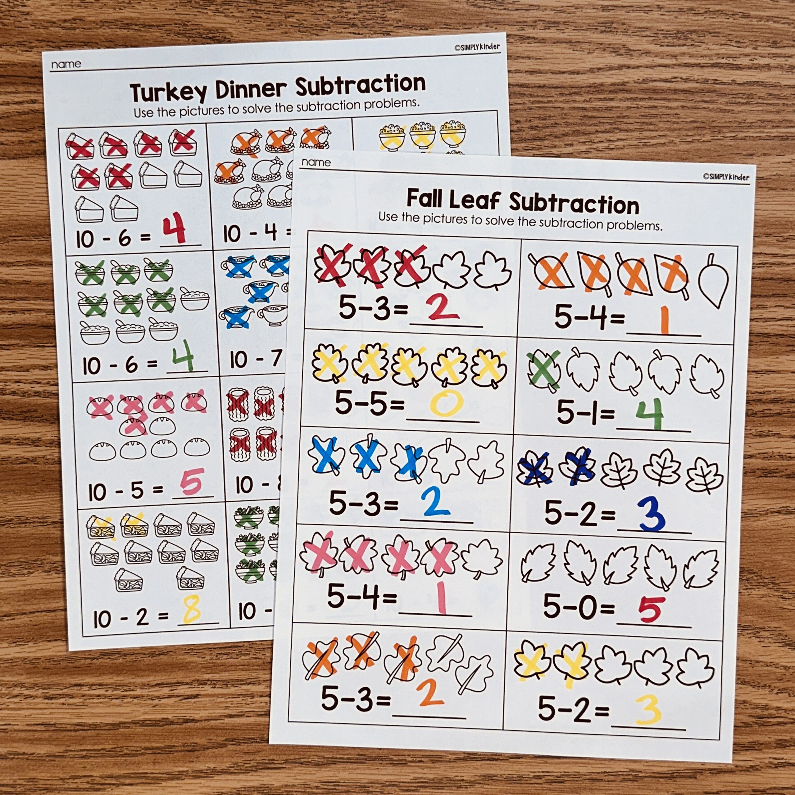 This is a set of subtraction printables with fun Thanksgiving and Fall themes.