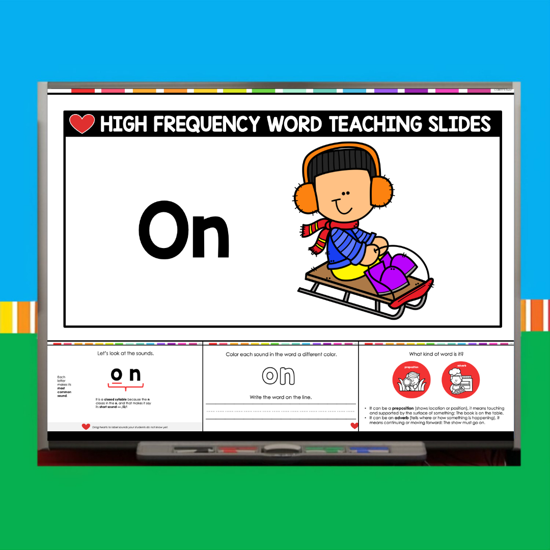 This download includes a ready-to-use PowerPoint for the sight word On. Inside, you’ll find: