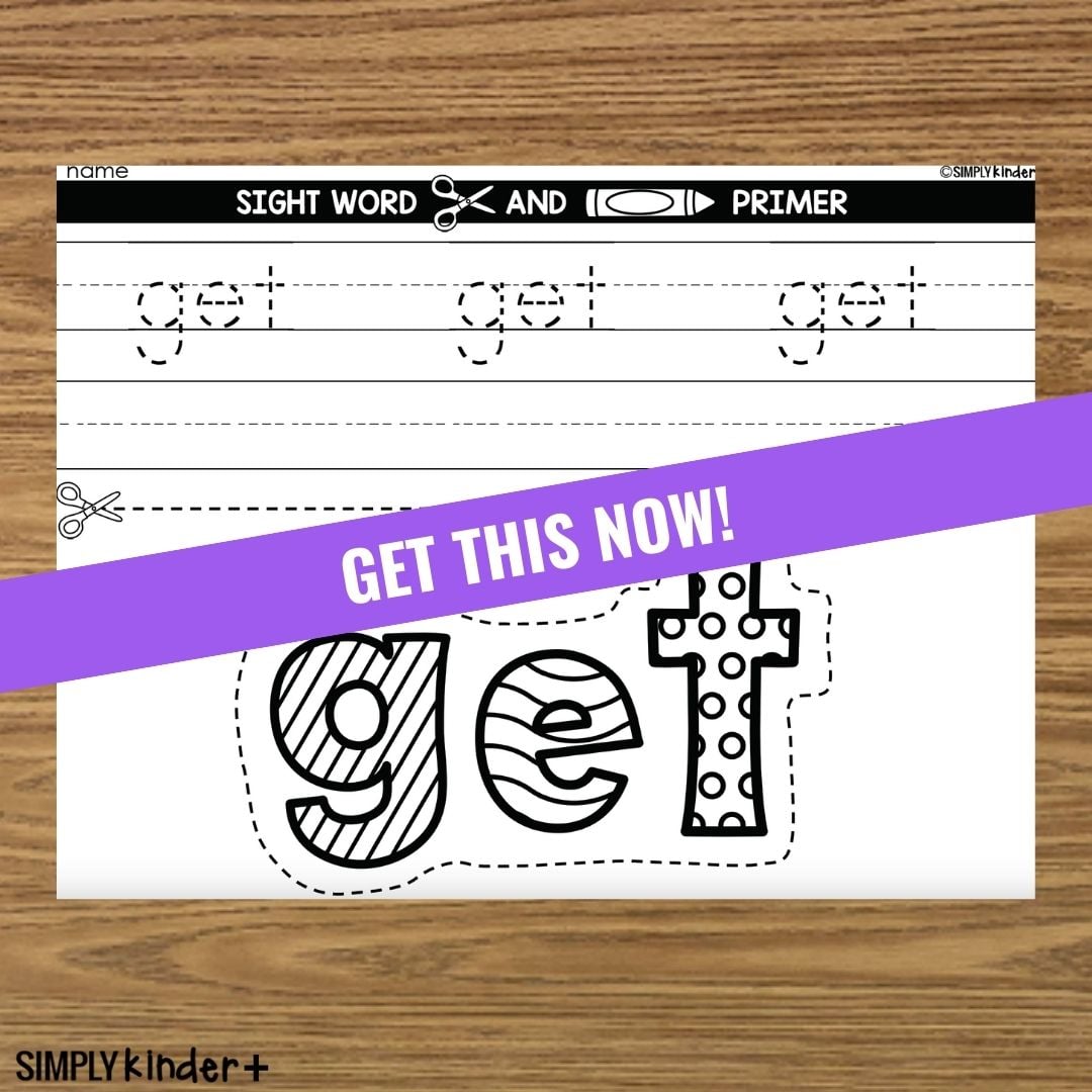 Put your fine motor skills to work with this Primer Word Cut and Color activity with the word get. Students will practice writing the word, coloring the fun pattern, and cutting out the word.