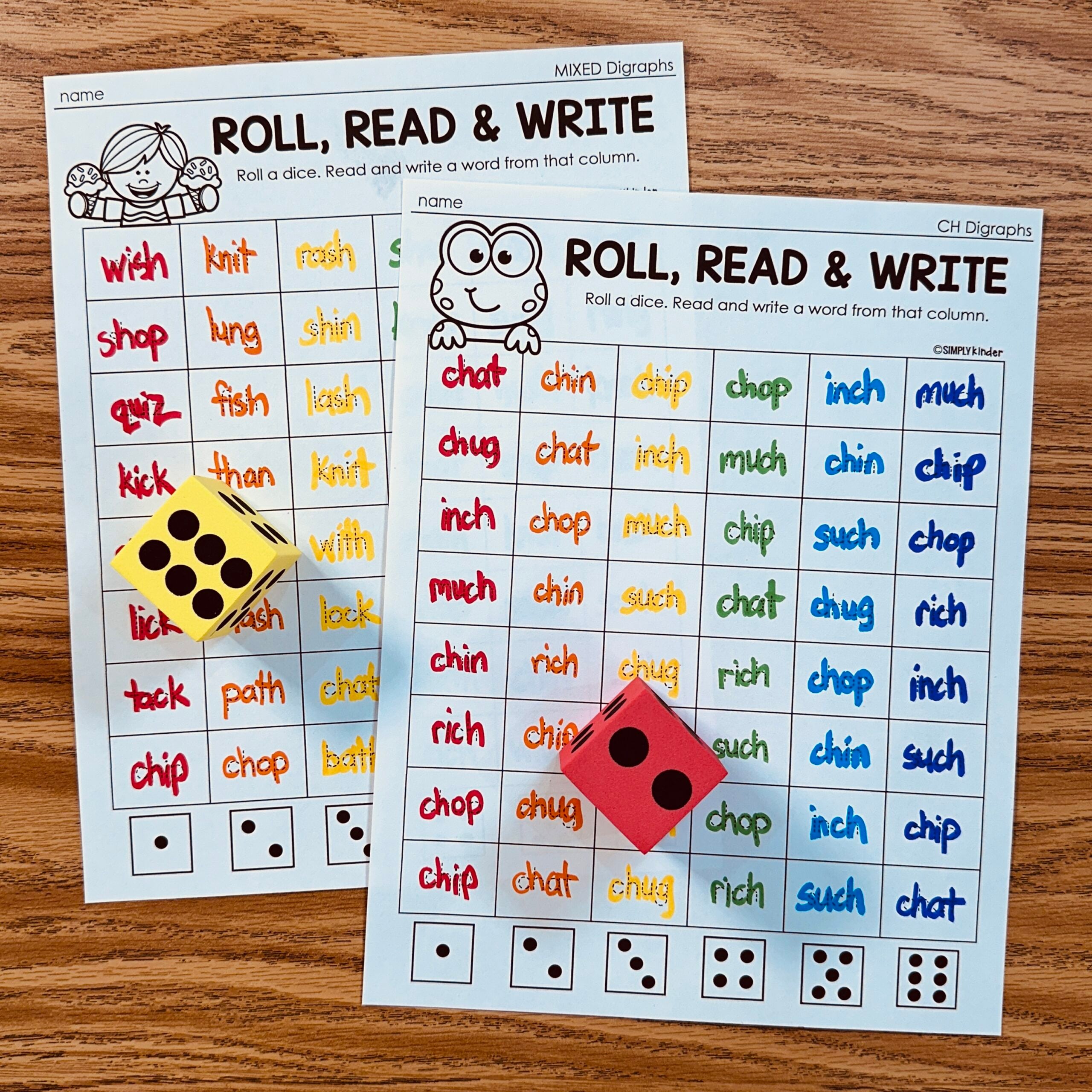 Digraphs No-Prep Worksheets: Roll & Write
