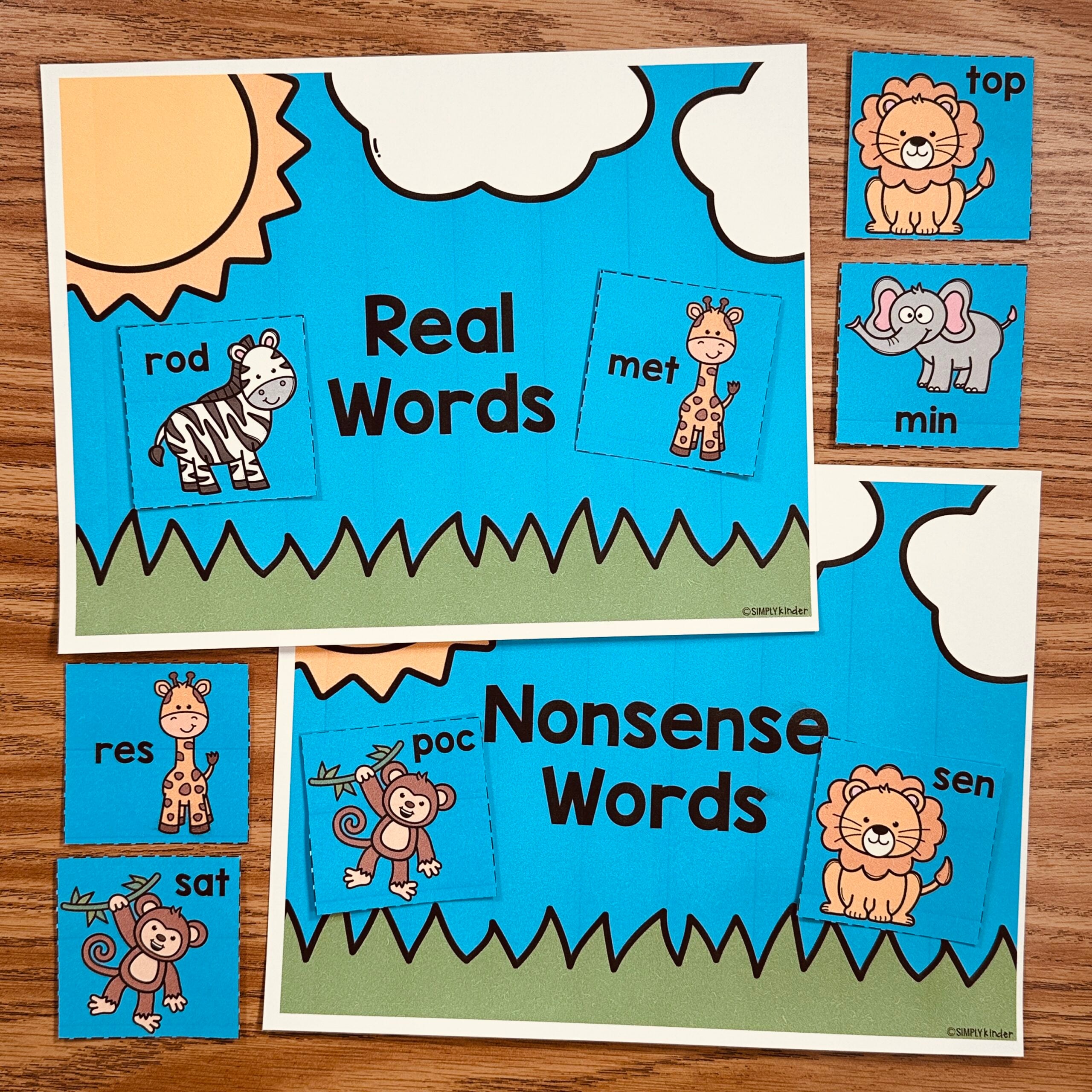 Students will sort the pictures by if they are real or nonsense words with a fun safari animal theme.