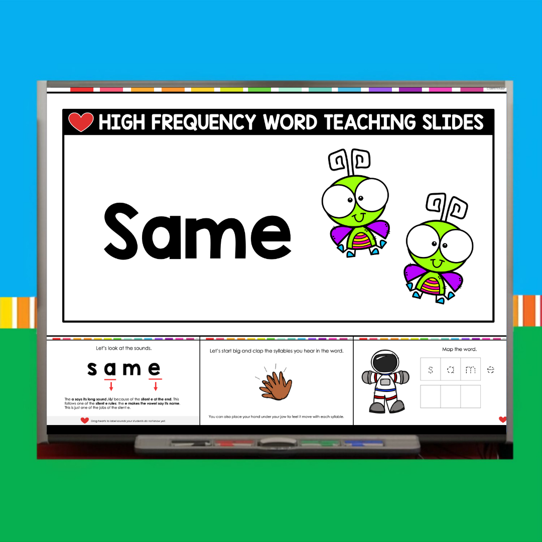This download includes a ready-to-use PowerPoint for the sight word Same. Inside, you’ll find: