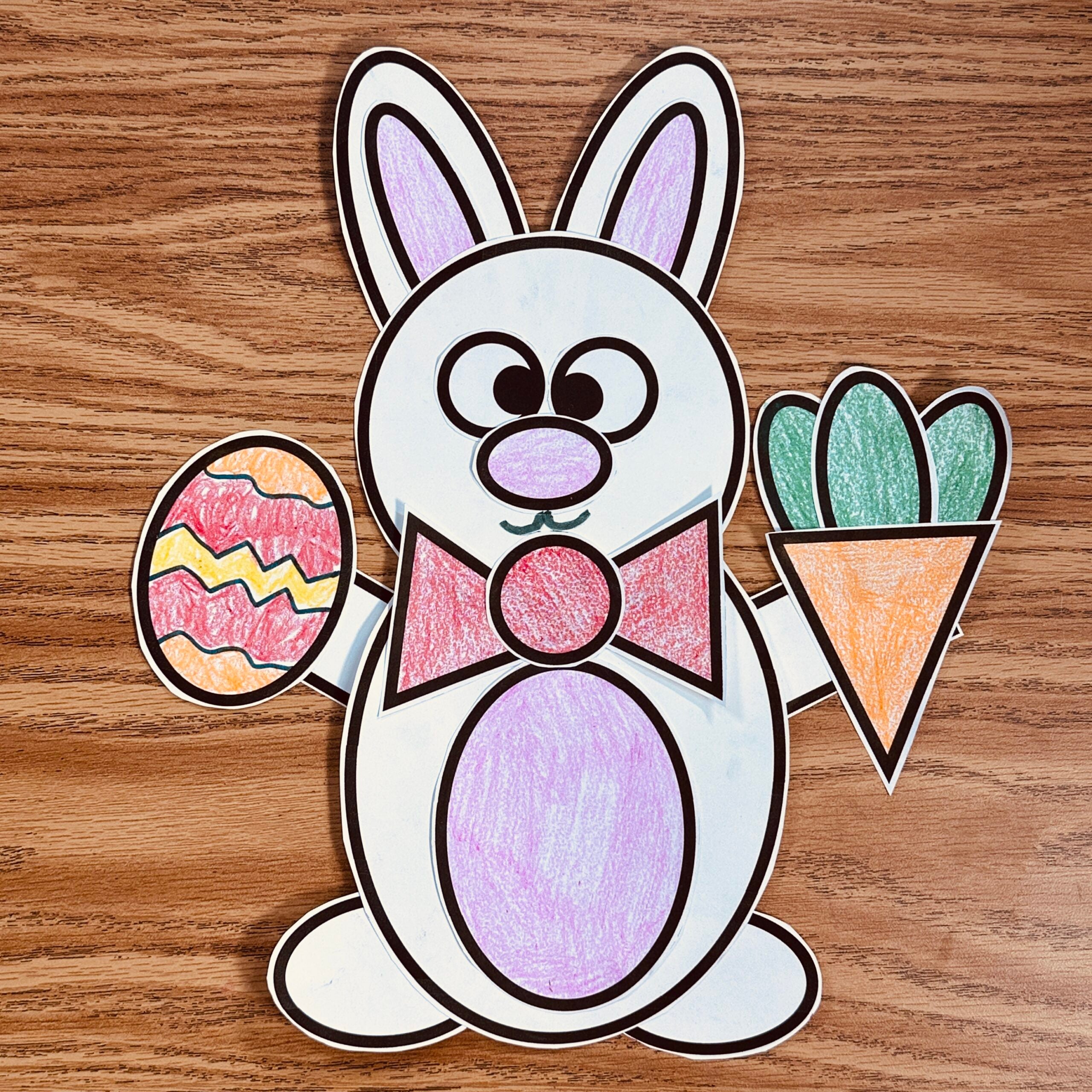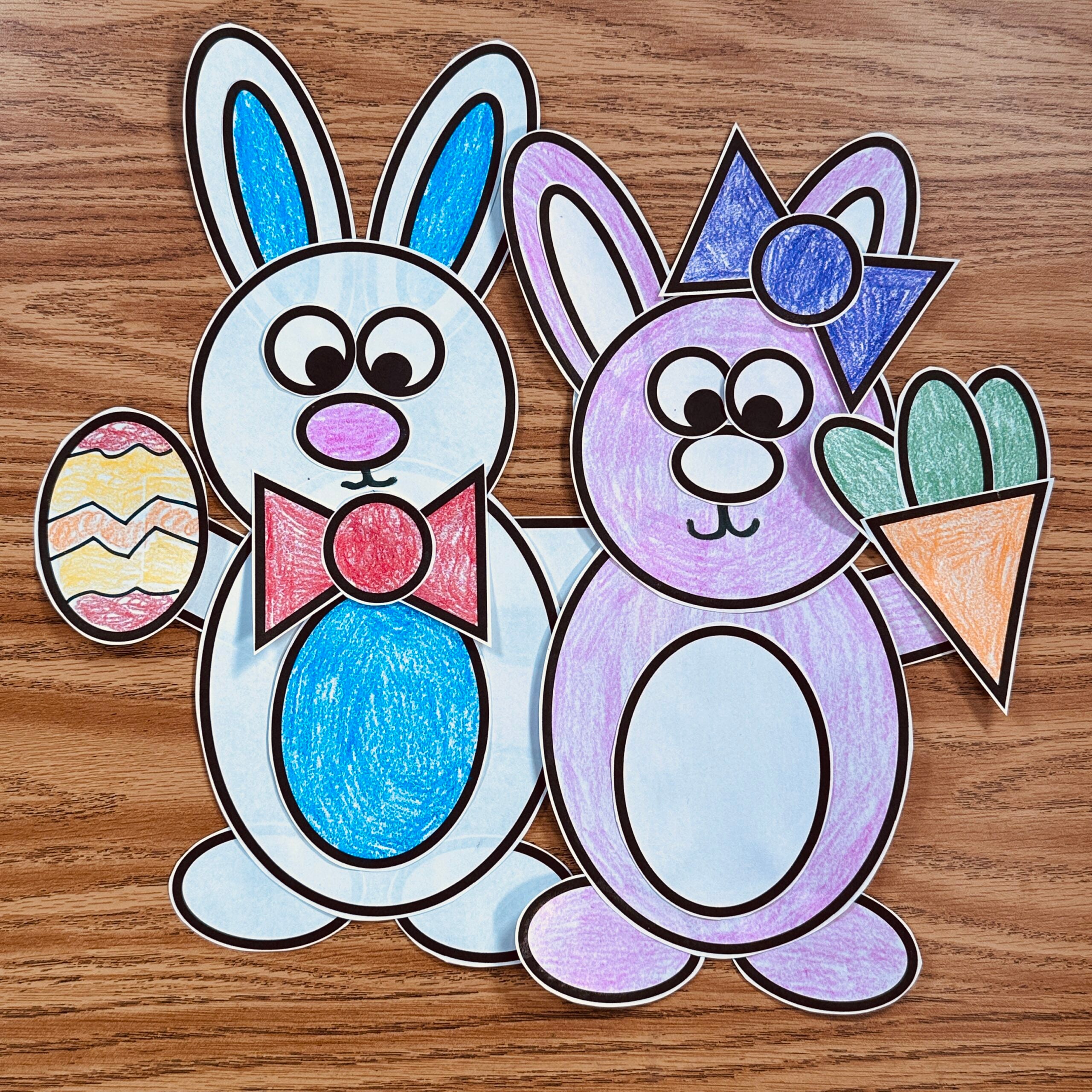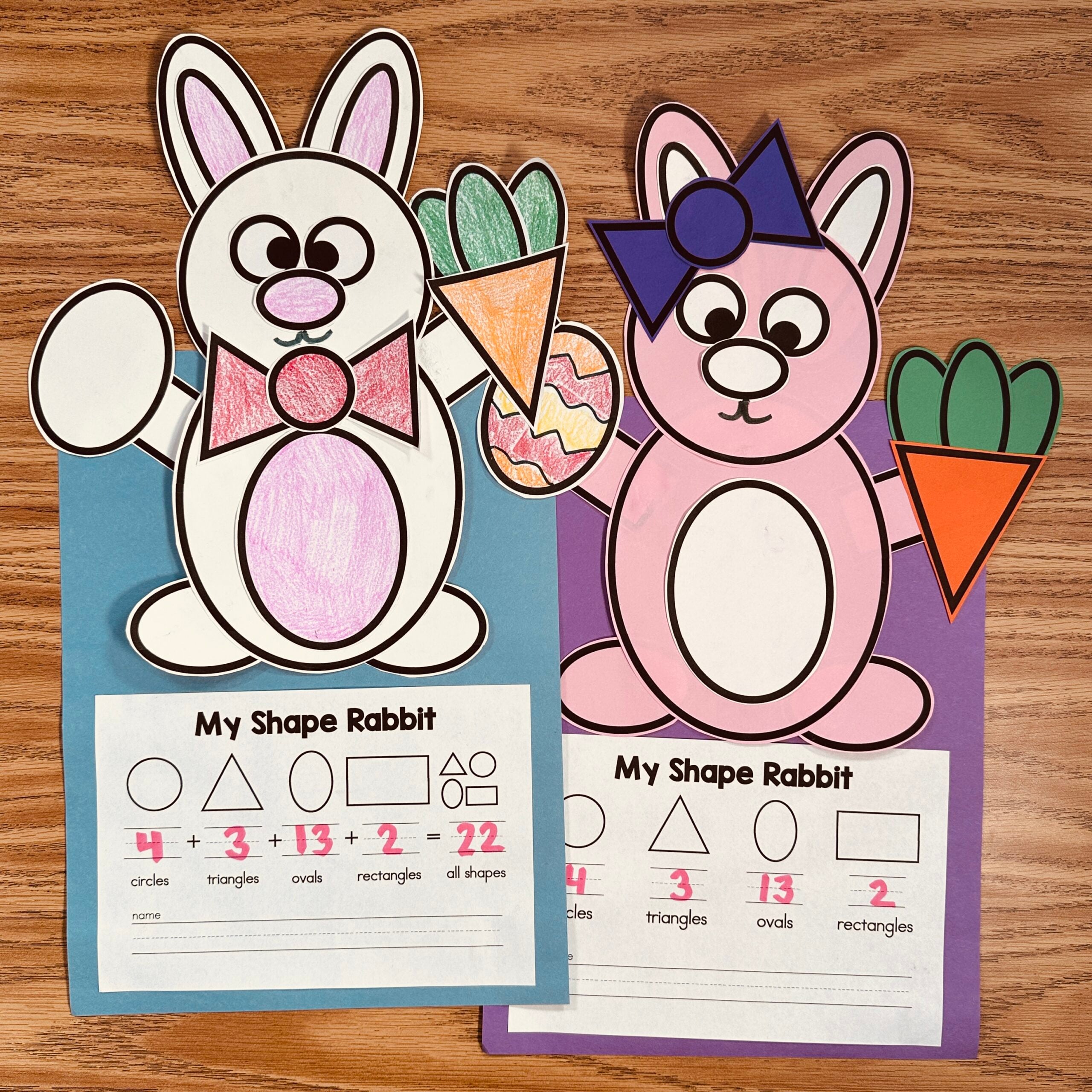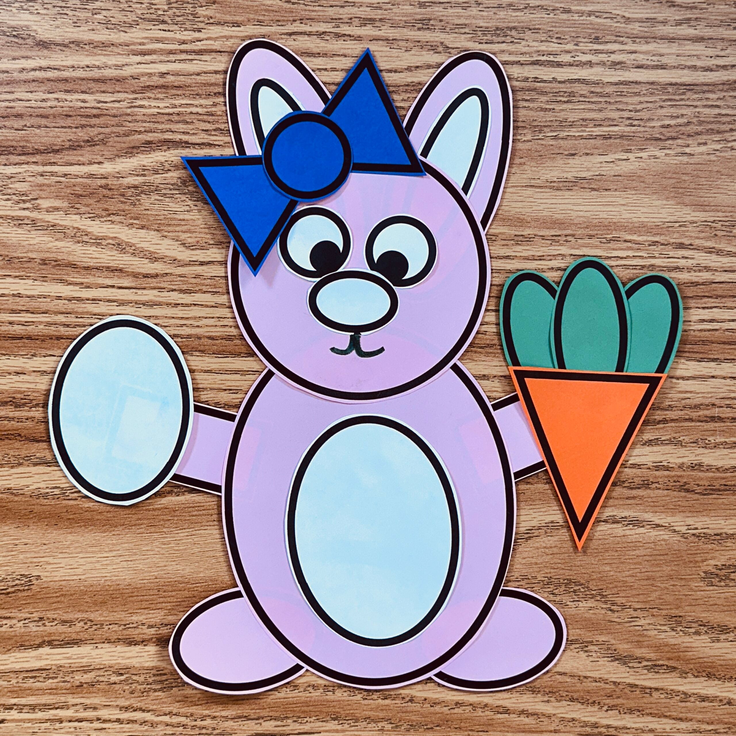 Students will color, cut, and glue shapes to build their own bunny while identifying circles, triangles, ovals, and rectangles—making it an ideal Easter math craft for your classroom!