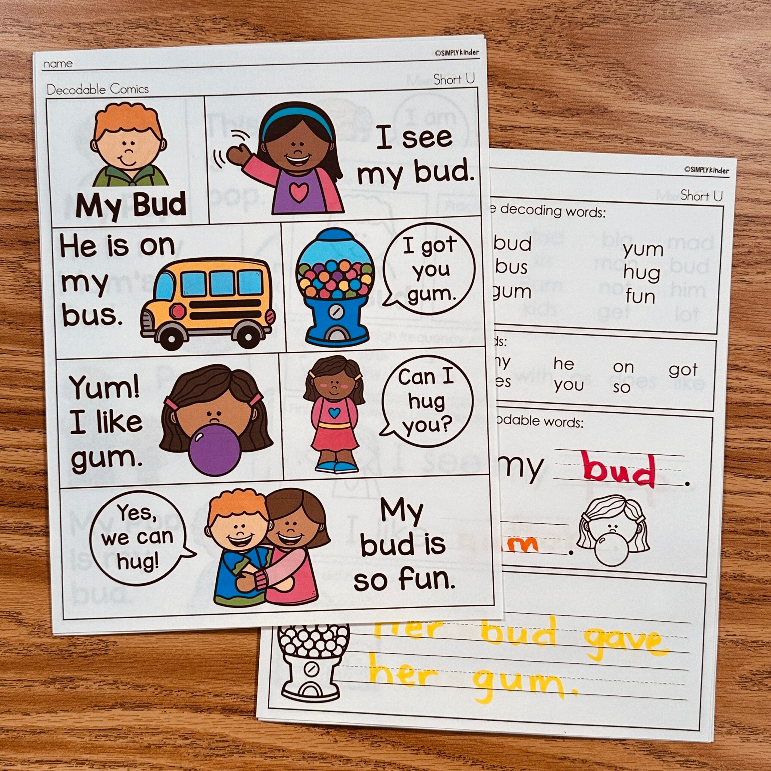 Practice reading CVC words with these fun Short U Decodable Comics with matching comprehension practice.