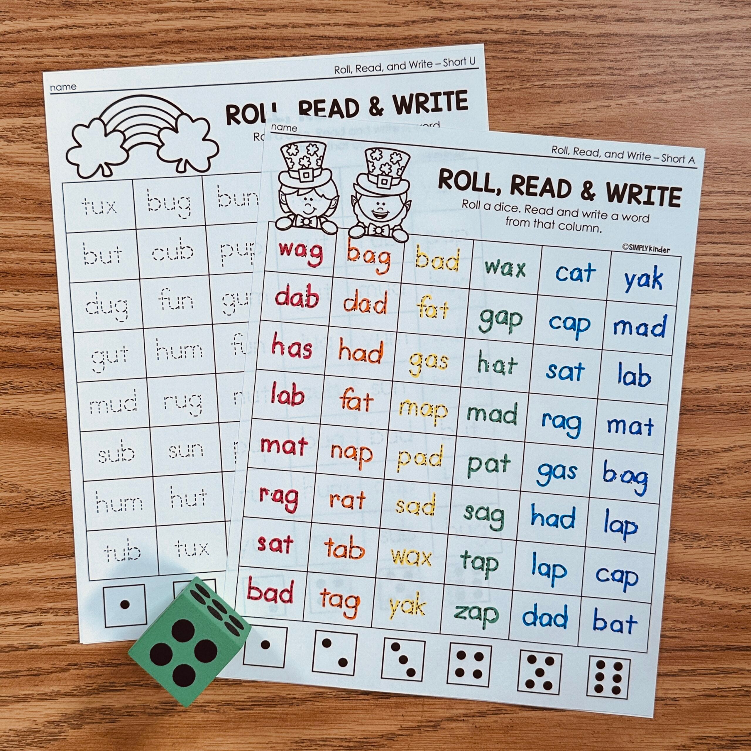 This is a set of Roll, Read, and Write Printable for CVC practice all with the St Patricks theme! Students will roll the dice and write the word for the number they roll.