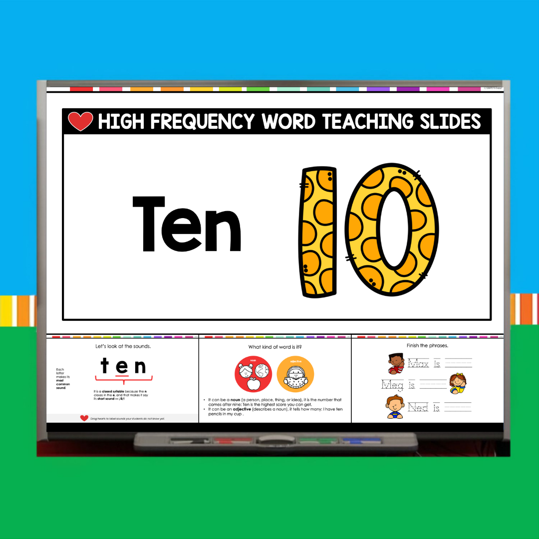 This download includes a ready-to-use PowerPoint for the sight word Ten. Inside, you’ll find: