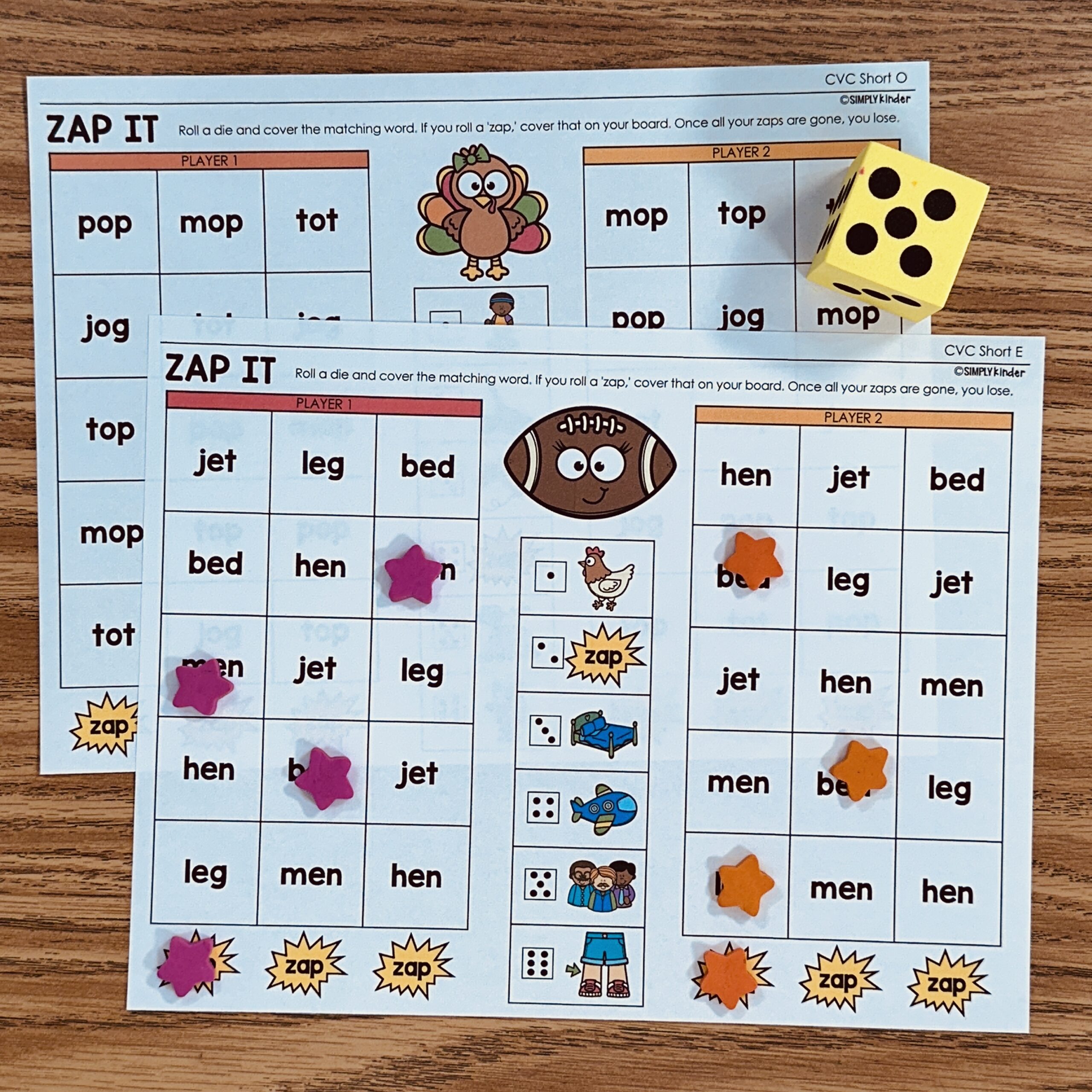 This is a set of Zap It Games for CVC practice all with the Thanksgiving theme! Students will roll a dice, cover the word for the number they rolled on, and fill their card to win. After they roll their third zap, they lose.