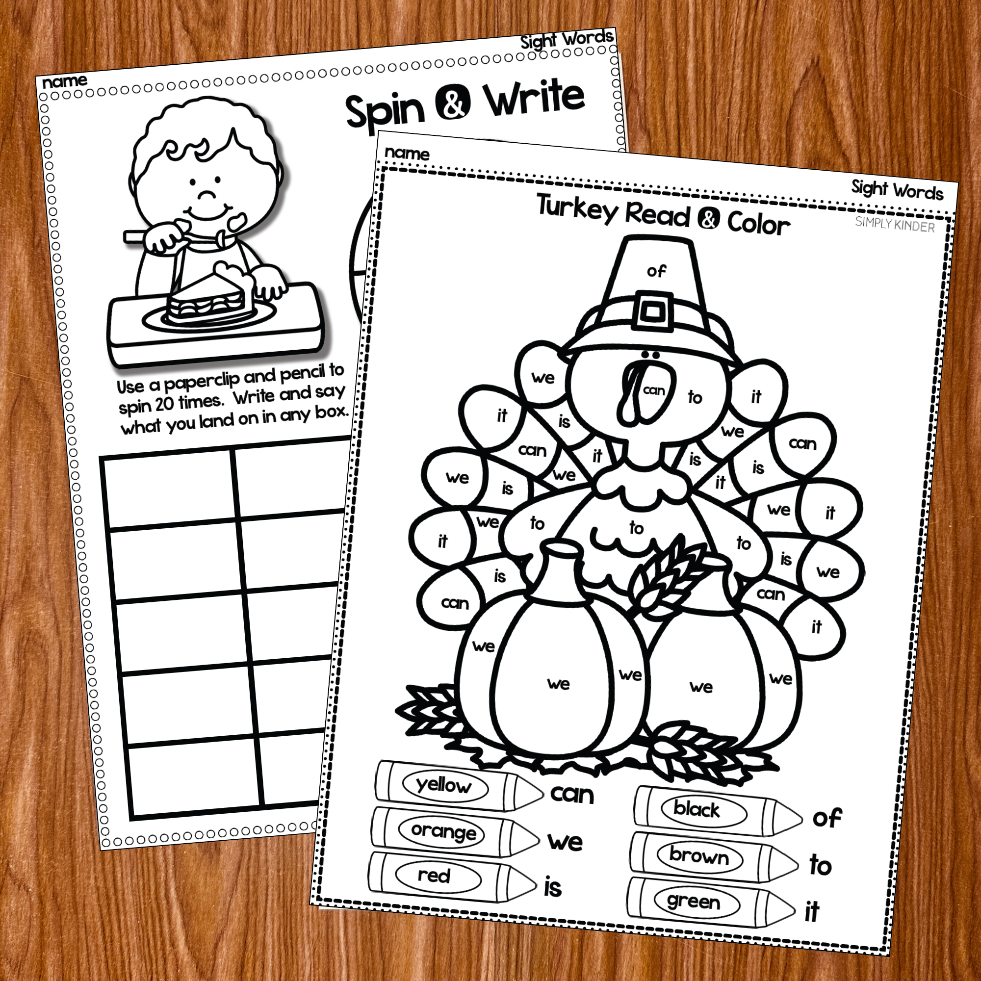 If you are working on Sight Words during the Thanksgiving time of year, these printables are for you!