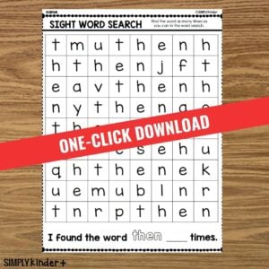 Practice sight words with a fun word search! Perfect for kindergarten, as the word only appears left to right and top to bottom and never intersect. At the end, they will count how many times they found the word and write the number. (It’s fun to color the words in different colors so you can see them clearly).
