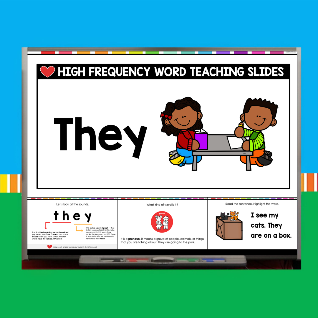 This download includes a ready-to-use PowerPoint for the sight word They. Inside, you’ll find: