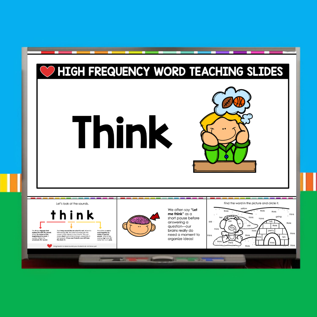 This download includes a ready-to-use PowerPoint for the sight word Think. Inside, you’ll find: