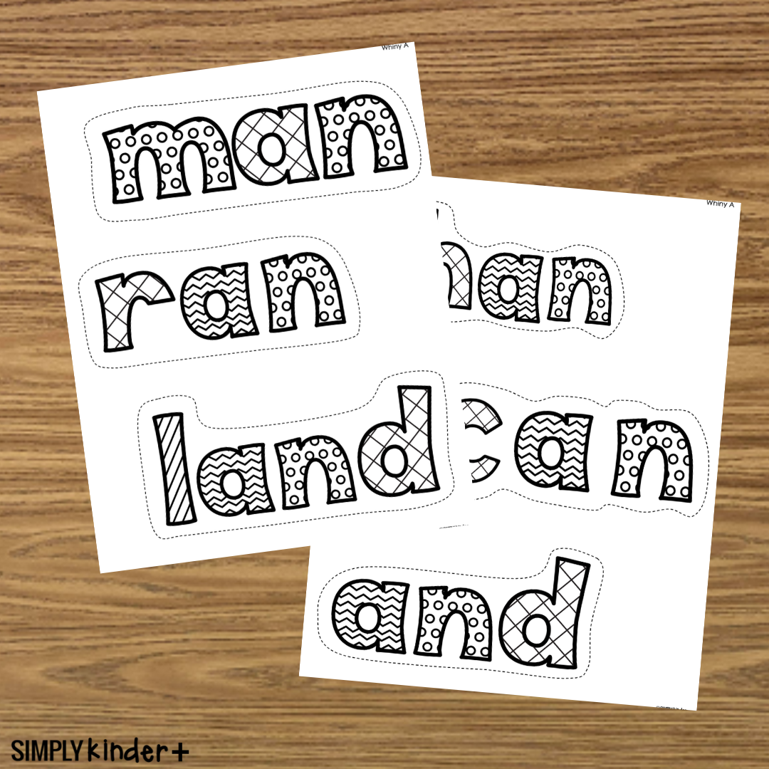 These are the cut and color pages for the Whiny A Decoding Sight Words.