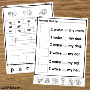 - Write in a Sentence (write the word in a sentence and lift the flap to write again or draw a picture)